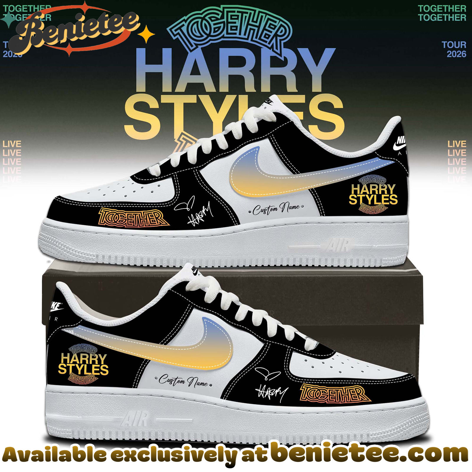 - 🚀 Made to Order: Each pair of Harry Styles – Together Together Tour Shoes Nike Air Force 1 is produced individually with clean, detailed finishing.