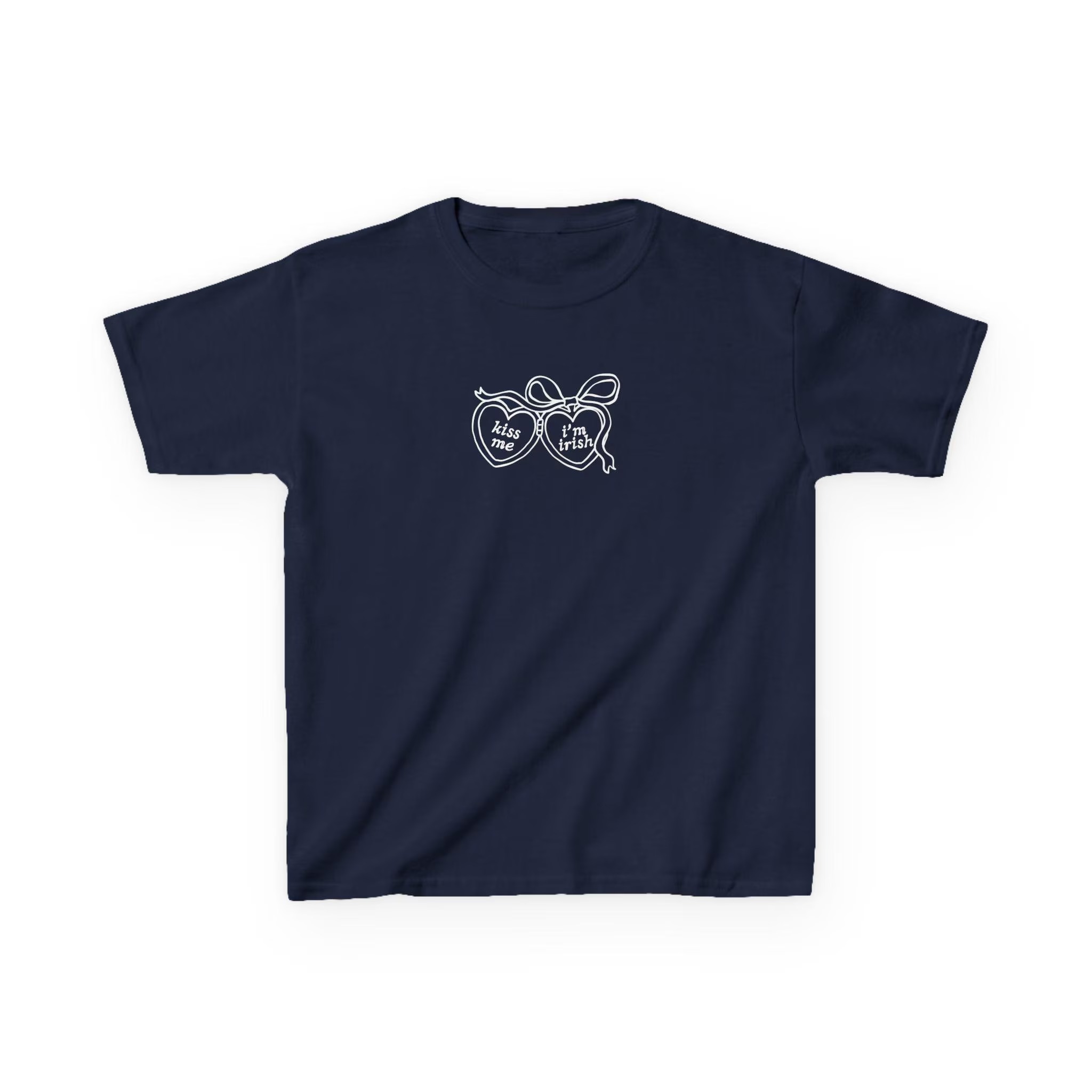 Heart Locket Kiss Me I’m Irish Babytee, Y2K Shamrock Tee, St Patricks Day Outfit