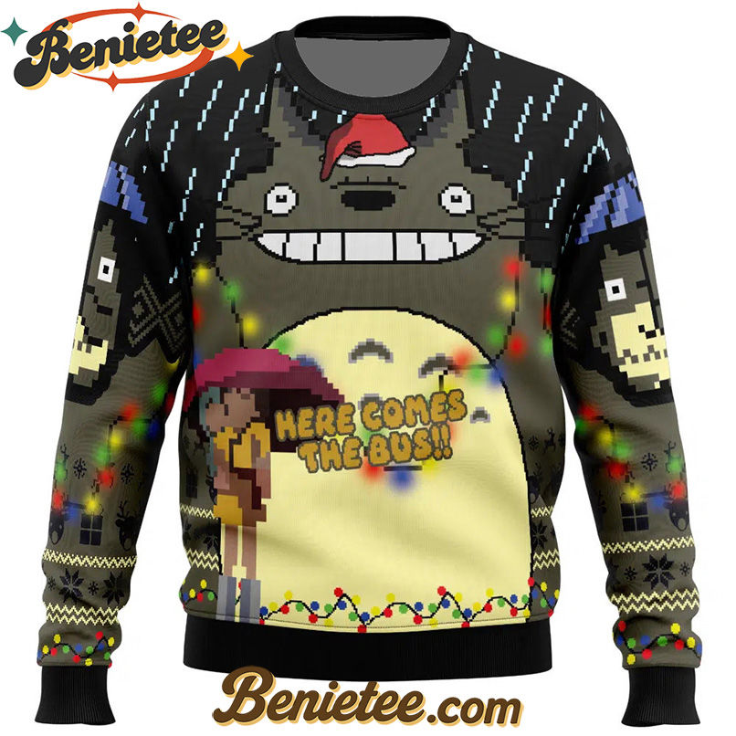Spread Holiday Cheer with the “Here Comes The Bus My Neighbor Totoro Ugly Christmas Sweater” – Buy Now!