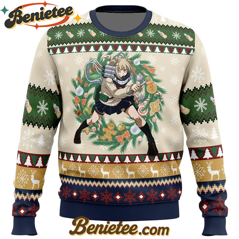 Embrace Your Inner Hero This Christmas with the Himiko Tora My Hero Academia Ugly Christmas Sweater!