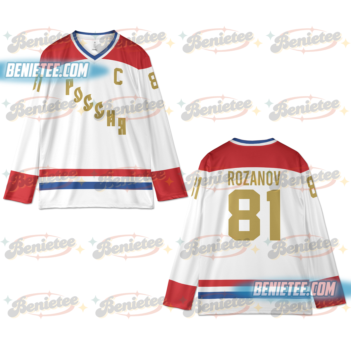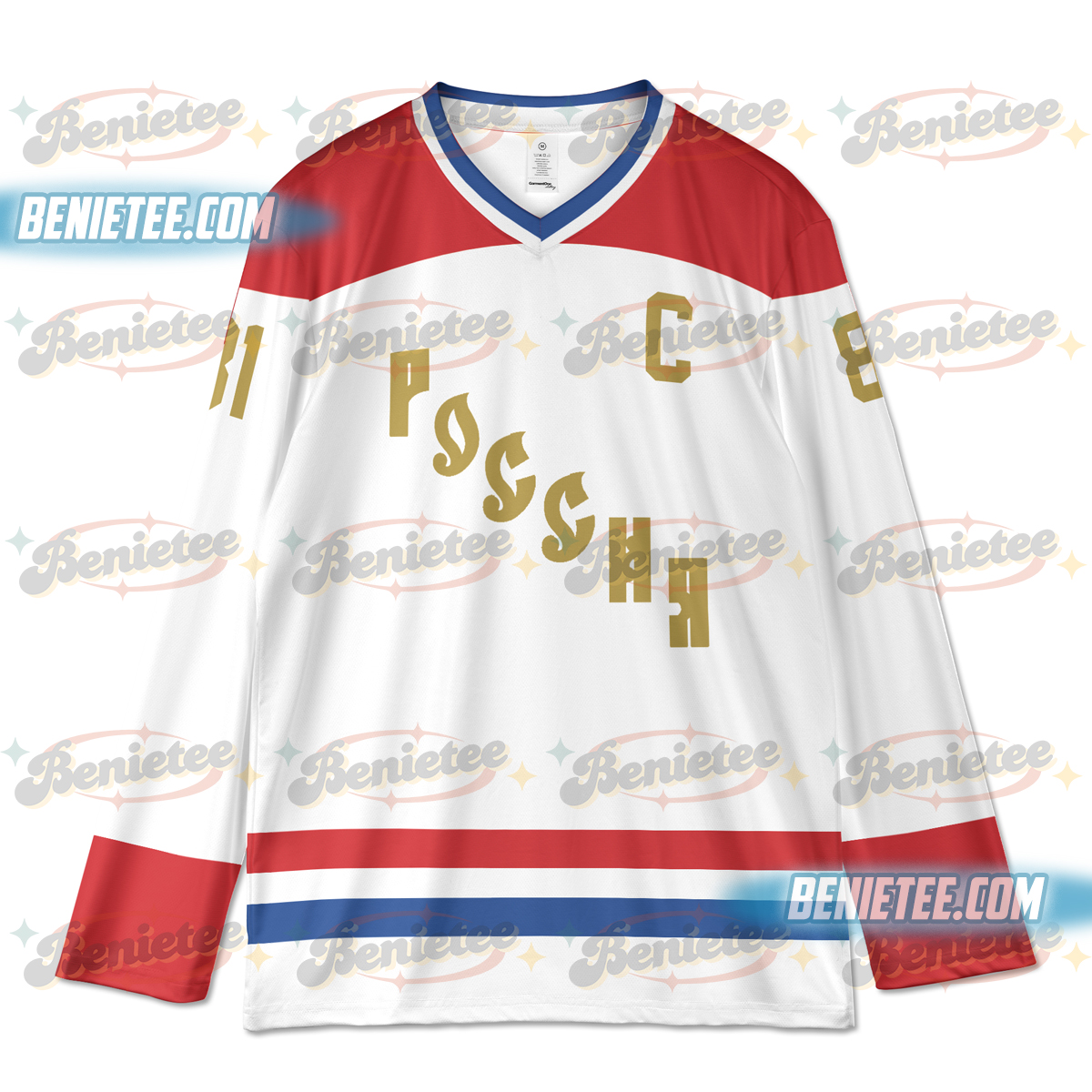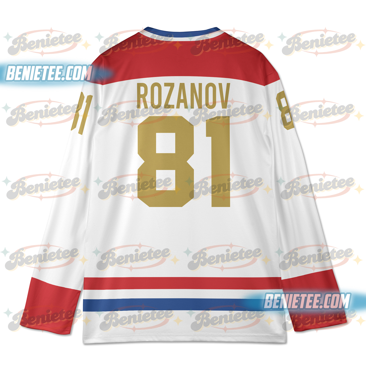 Design: Classic hockey jersey style with reinforced neckline and loose sleeves.