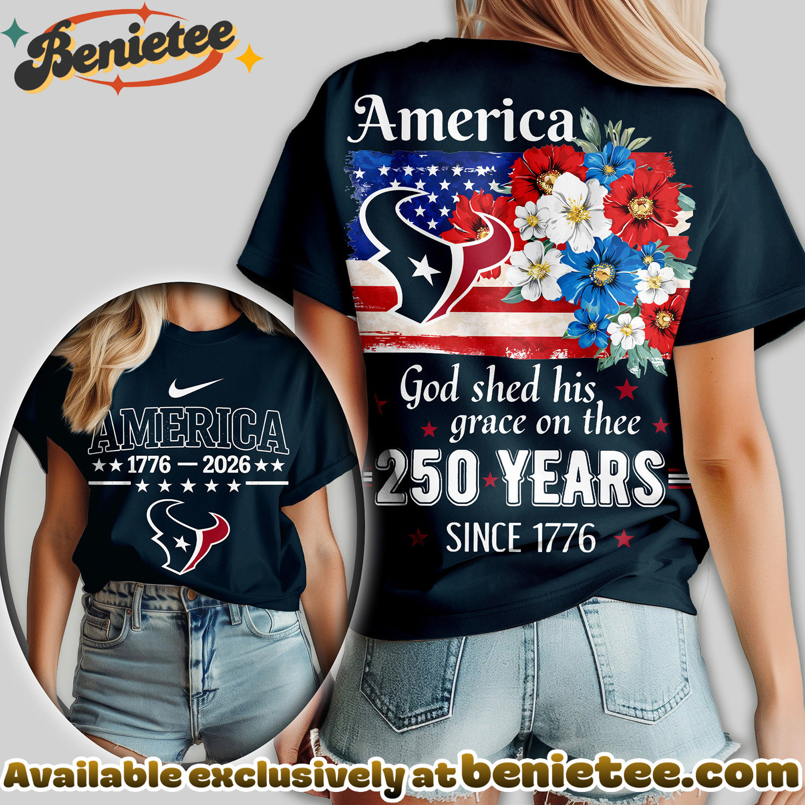 Celebrate faith and football with the Houston Texans Premium NFL America God Shed His Grace On Thee Women Tshirt, Hoodie, Sweatshirt