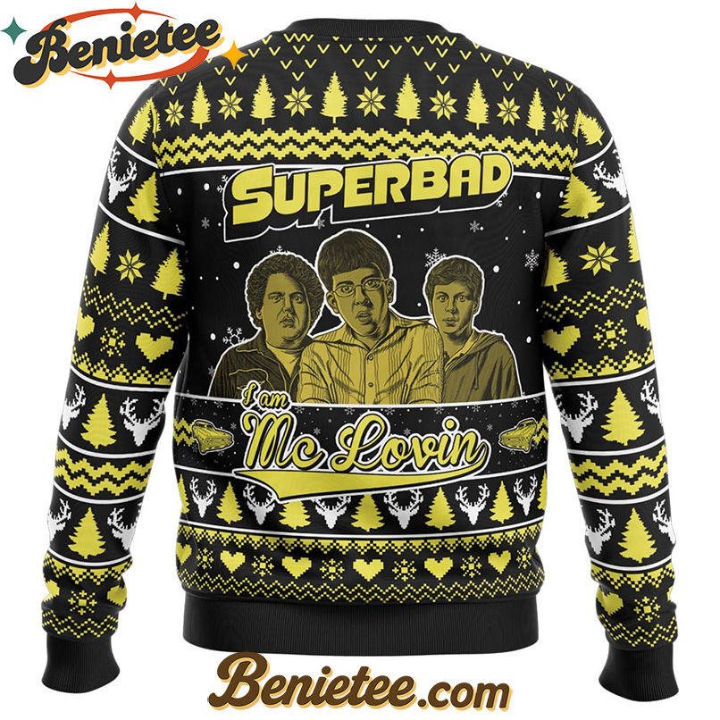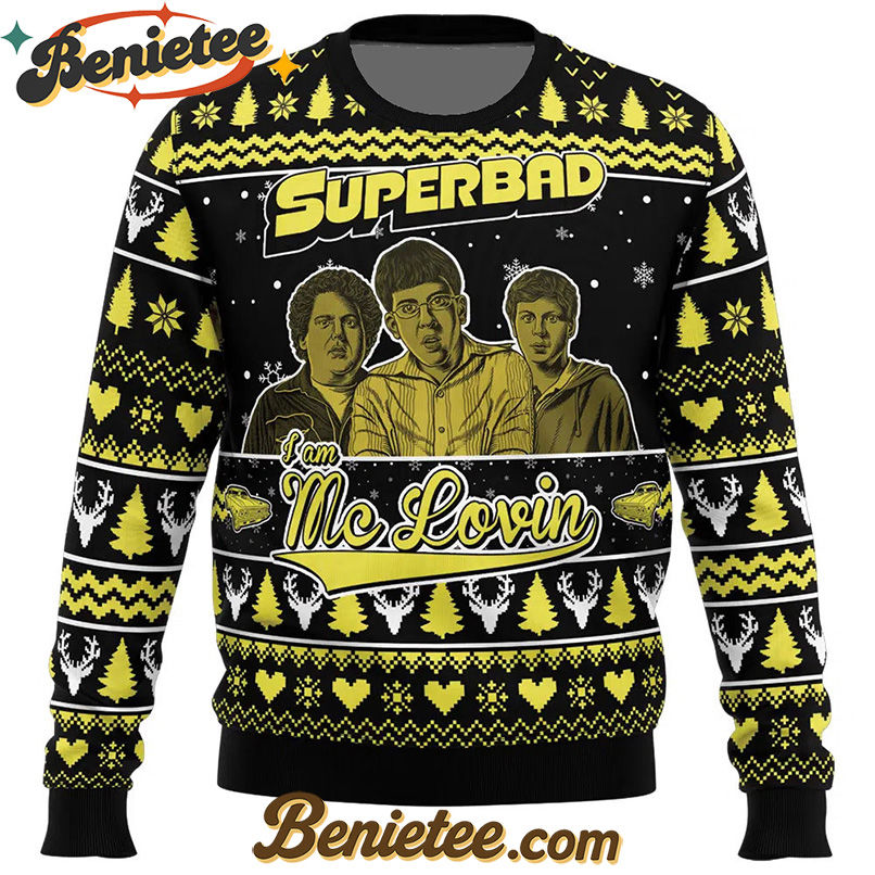 Celebrate the season with the I am Mc Lovin Superbad Ugly Christmas Sweater — a playful, cozy ugly sweater made for joyful holiday moments.