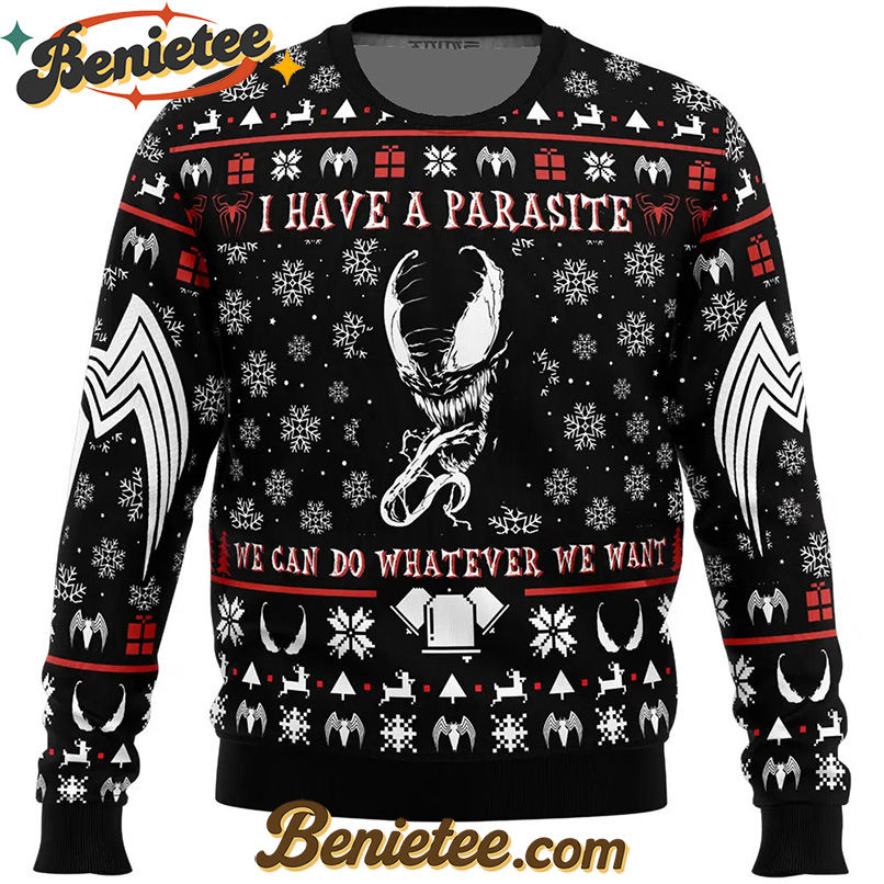 Embrace the Venomous Holiday Spirit with the “I Have a Parasite We Are Venom” Ugly Christmas Sweater