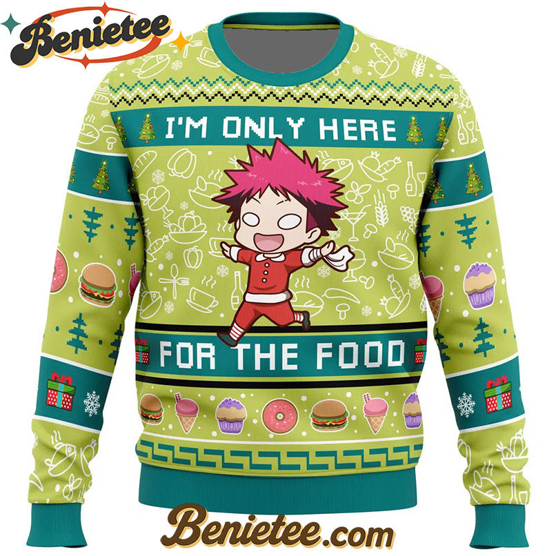 Embrace the Festive Feast with the “I’m Only Here For The Food Food Wars Ugly Christmas Sweater”