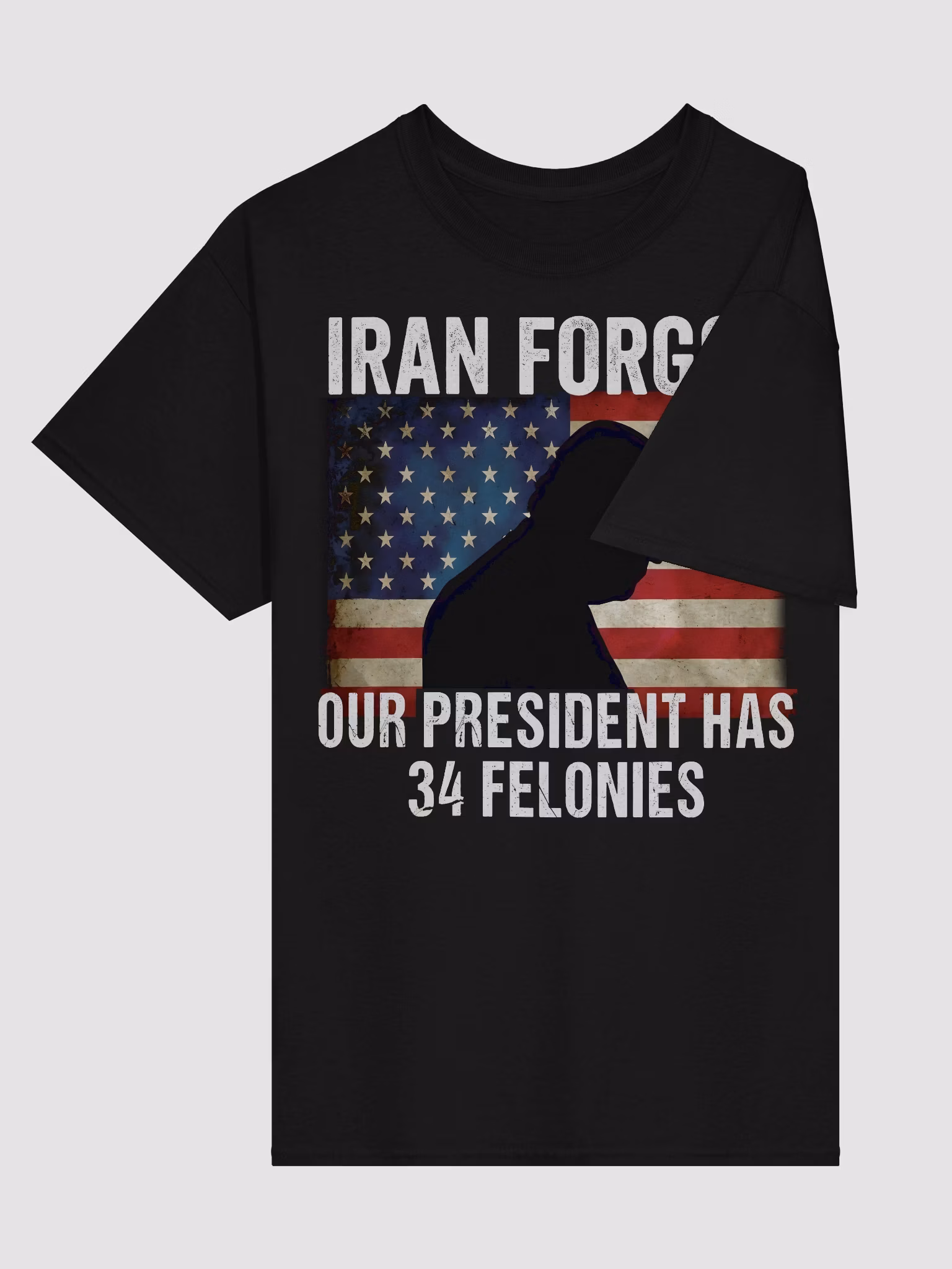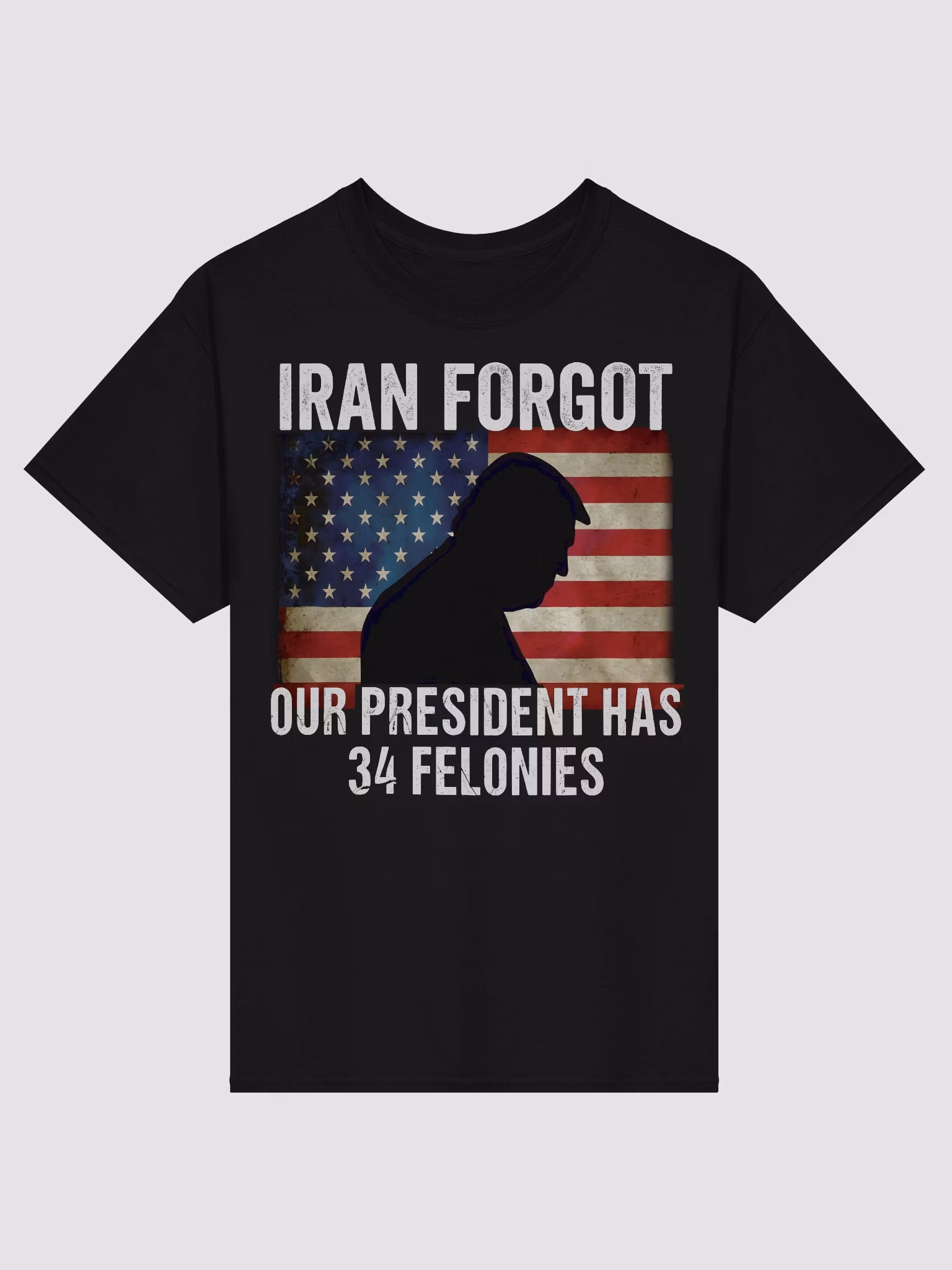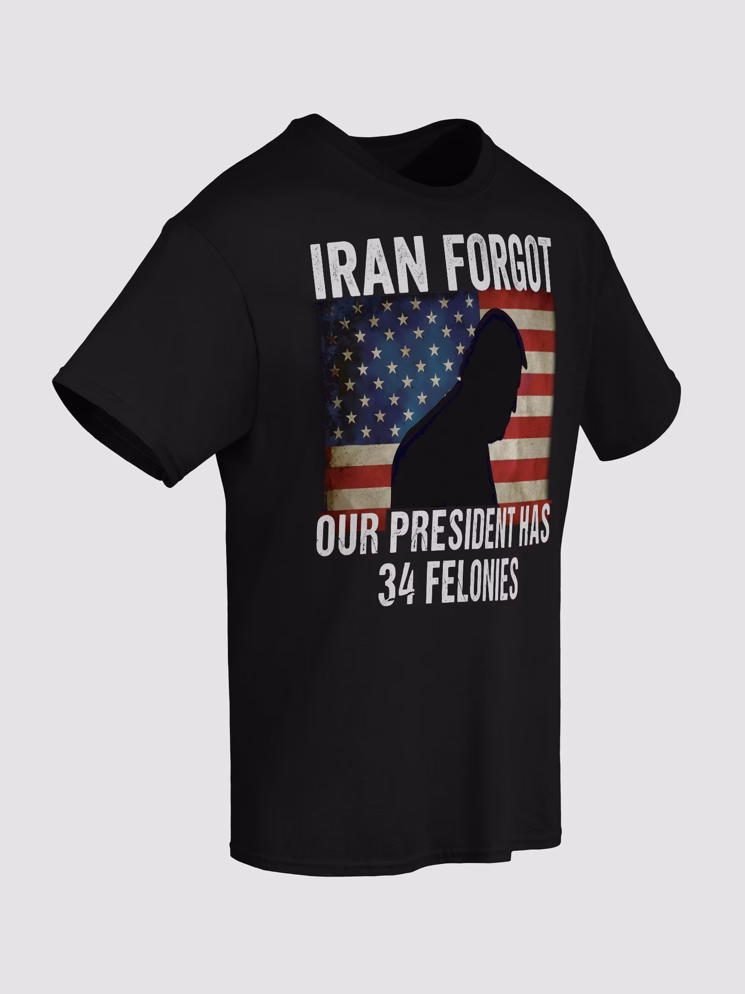 - This item: Iran Forgot Our President Has 34 Felonies TShirt Price range: $19.99 through $49.99 Save 20%