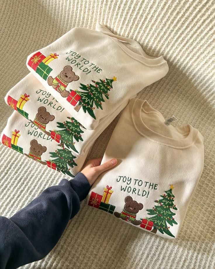 - This item: Joy To The World Embroidered Christmas Sweatshirt, Holiday Bear Crewneck, Christmas Gift Sweatshirt, Cozy Winter Embroidery Shirt