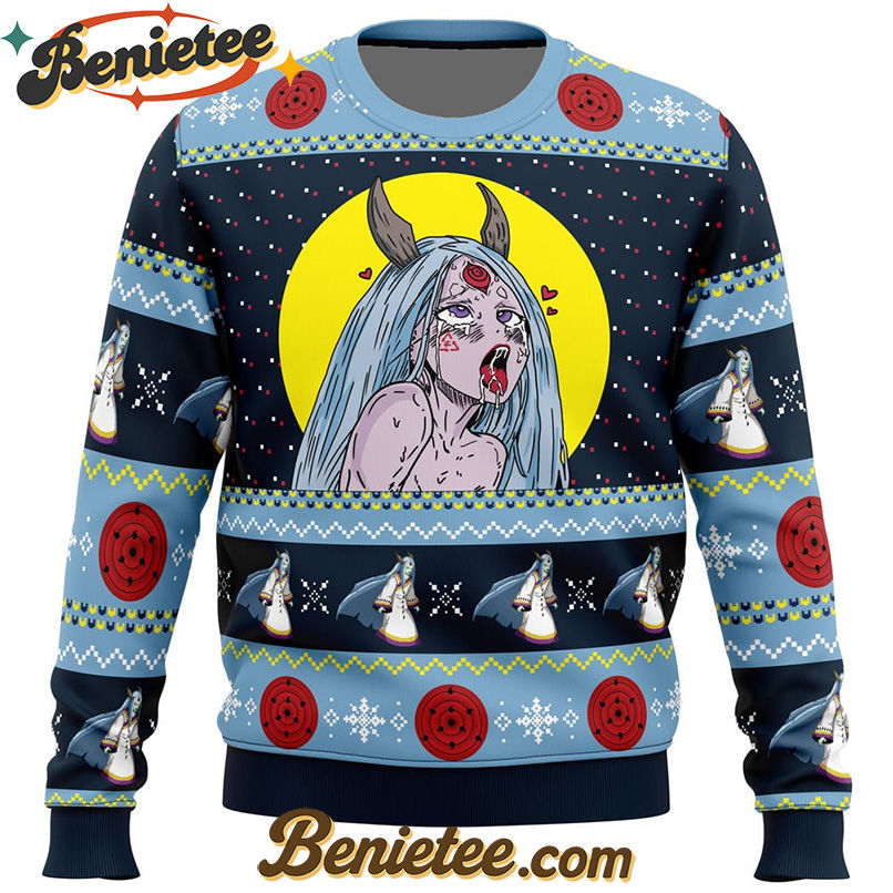 Unleash Your Inner Goddess This Holiday Season: Shop the Kaguya Ōtsutsuki Ahegao Shippuden Ugly Christmas Sweater!