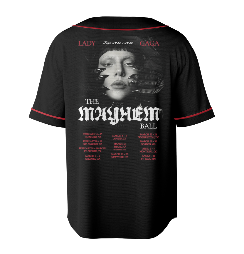 This premium baseball jersey features a bold tour-inspired graphic influenced by the iconic Lady Gaga Music Tour 2026 era. Designed for fans who love legendary pop aesthetics and a relaxed, modern silhouette, this jersey is a must-have for any Lady Gaga fan or pop music lover looking to stand out.