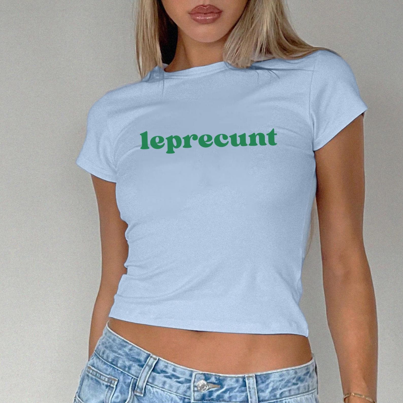 - This item: Leprecunt St Patrick's Day Baby Tee, Y2K St Paddys Crop Top, Vintage 90s Womens Retro Shirt, Shamrock Irish T-Shirt, I Put The Double D's
