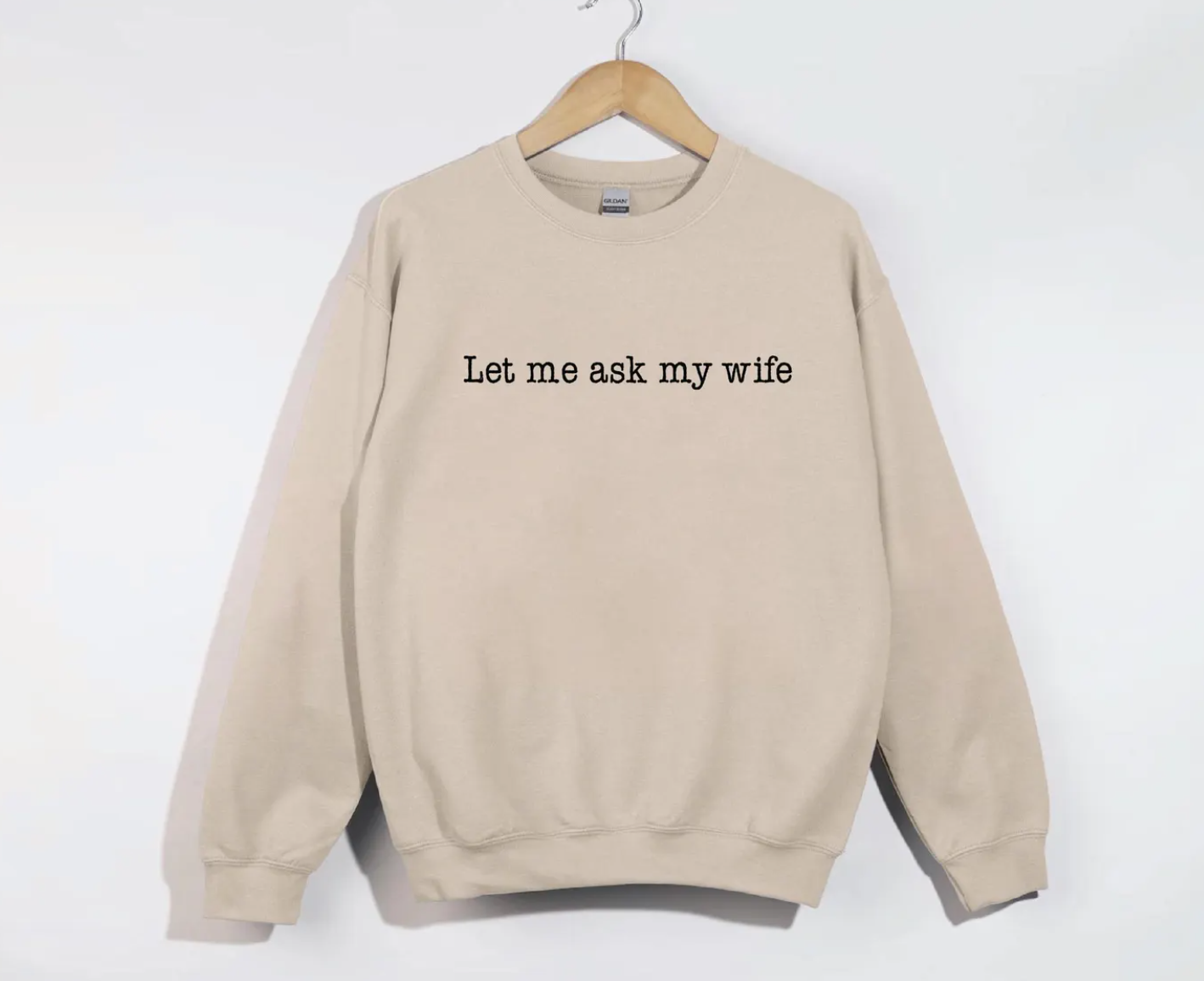 - This item: Let Me Ask My Wife Tshirt, Husband Gift Price range: $19.99 through $49.99 Save 20%
