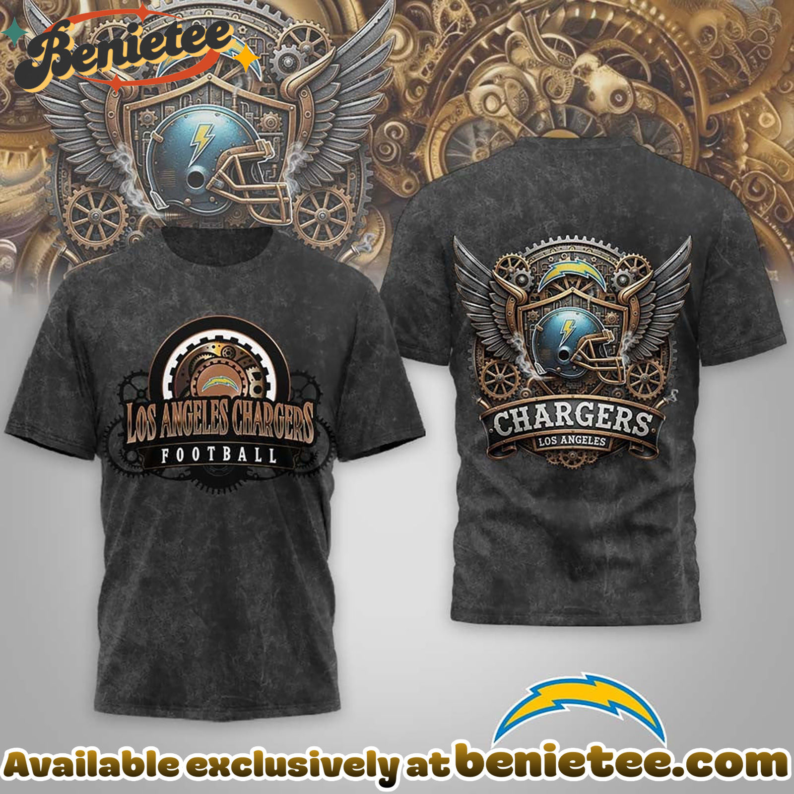 - ⚙️ Made to Order: Each Los Angeles Chargers Premium NFL Steampunk T-shirt is created individually after purchase to ensure a fresh, premium finish.