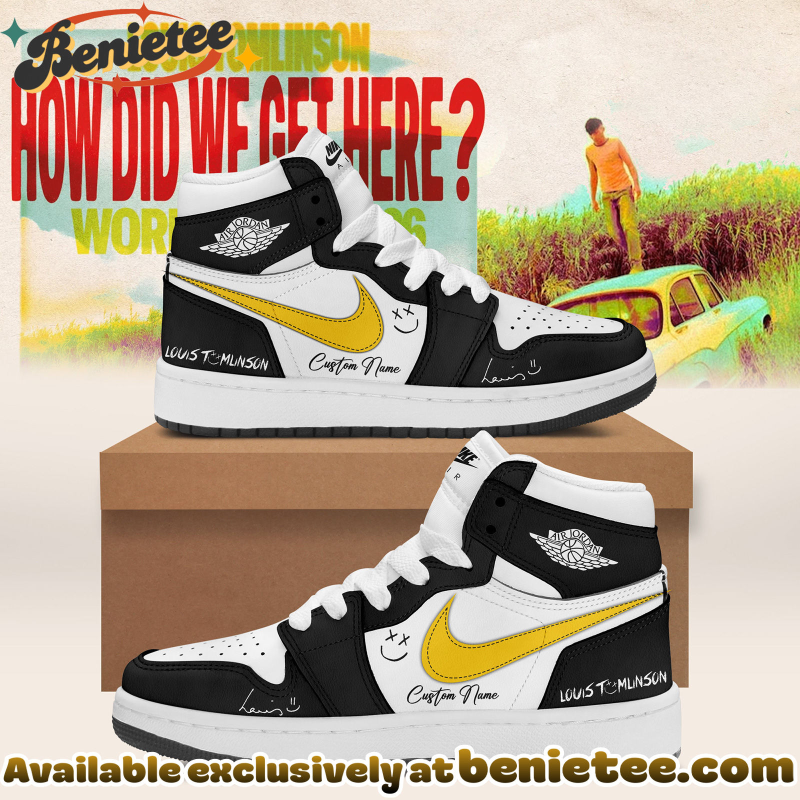 Crafted with premium materials, these Nike Air Jordan 1s offer superior comfort and durability, perfect for everyday wear or making a statement at your next event. Whether you’re attending a concert, hitting the streets, or adding to your collection, the LOUIS How Did We Get Here? Tour Shoes Nike Air Jordan 1 – Ver 4 are the ideal choice. They make an unforgettable gift for any fan, celebrating a pivotal moment in music history with iconic footwear.