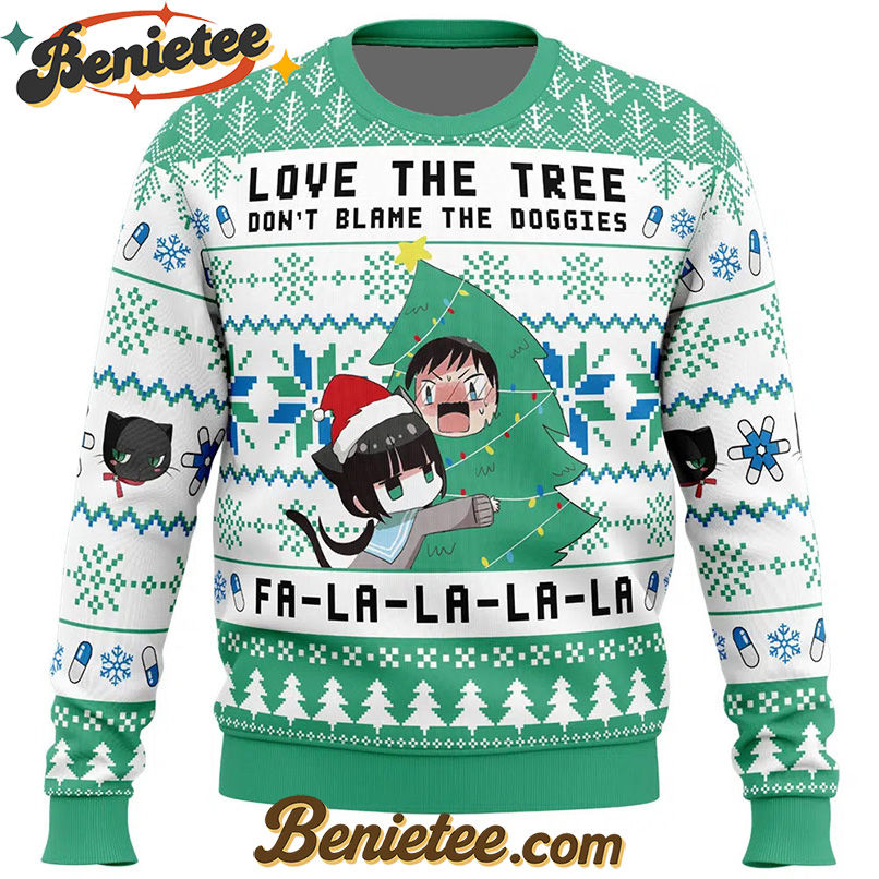 Embrace the Festive Spirit with the Love The Tree Don’t Blame The Doggies Ugly Christmas Sweater!