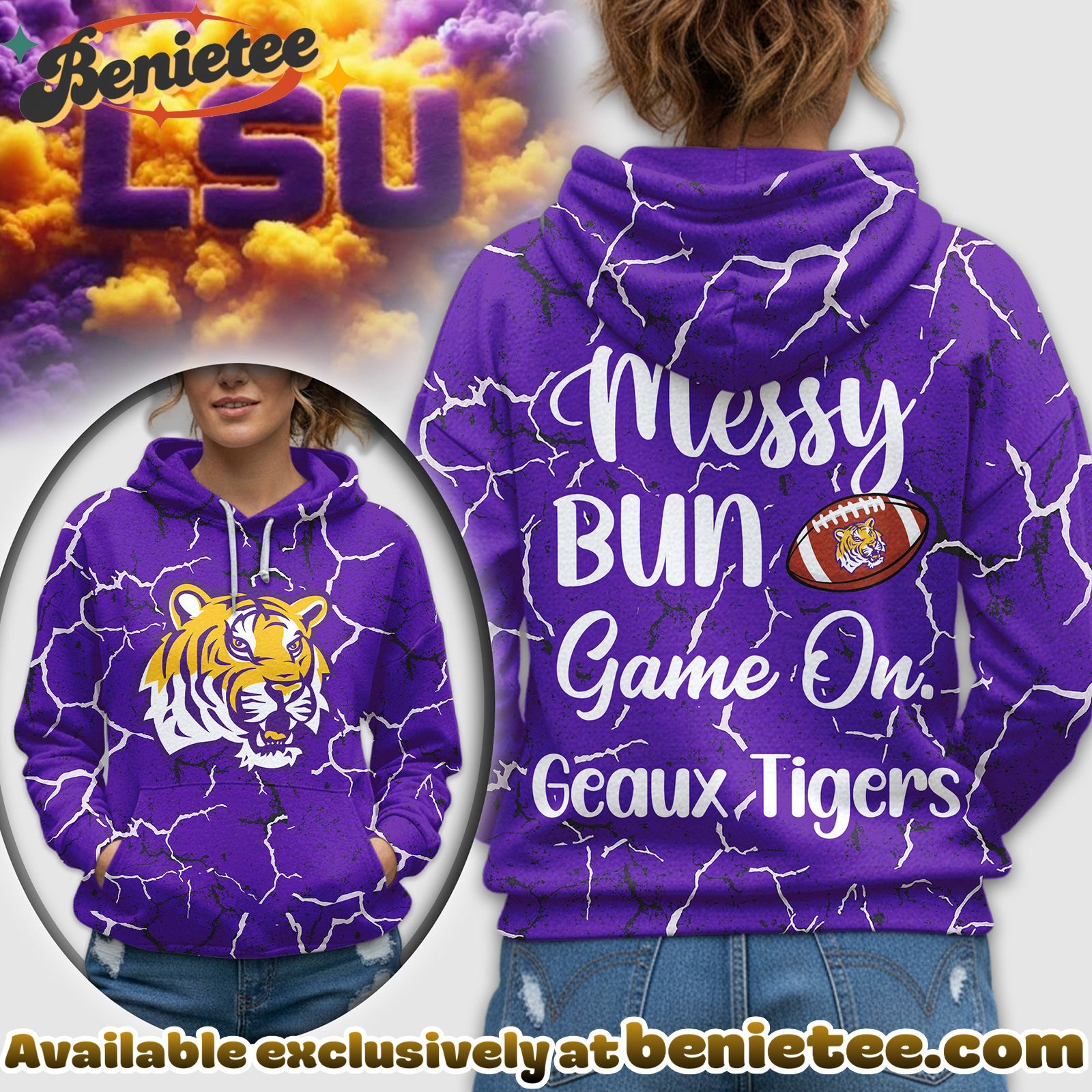 - This item: LSU Tigers Premium NCAA Messy Bun Game On 3D Hoodie, Sweatshirt, Tshirt