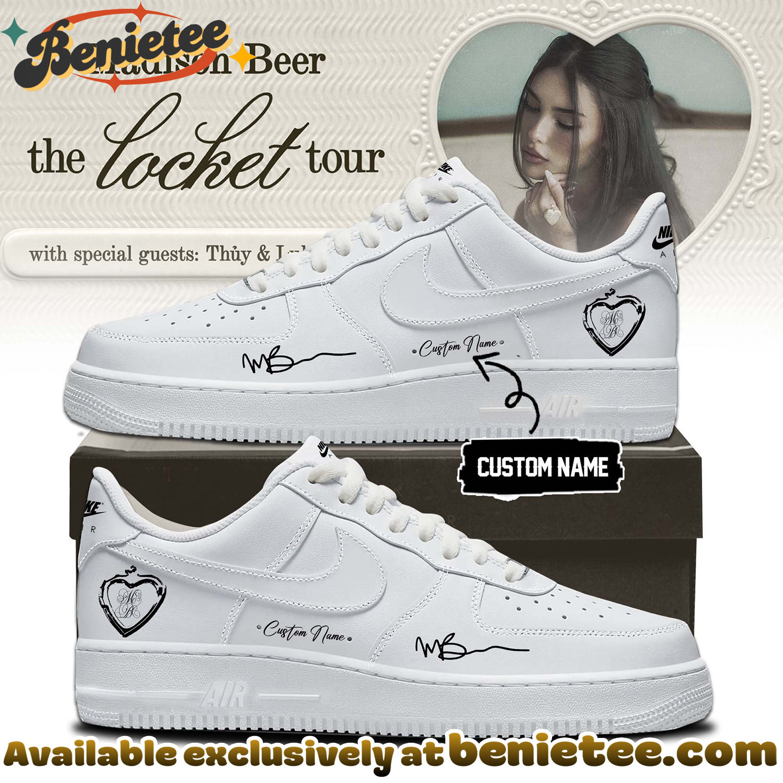 Crafted with premium materials, these Nike Air Force 1s offer both durability and comfort, perfect for concerts, casual outings, or as a statement piece in your collection. They make an unforgettable gift for any Madison Beer enthusiast or a special treat for yourself. Show your love for ‘The Locket Tour’ and elevate your sneaker game with this limited edition release.