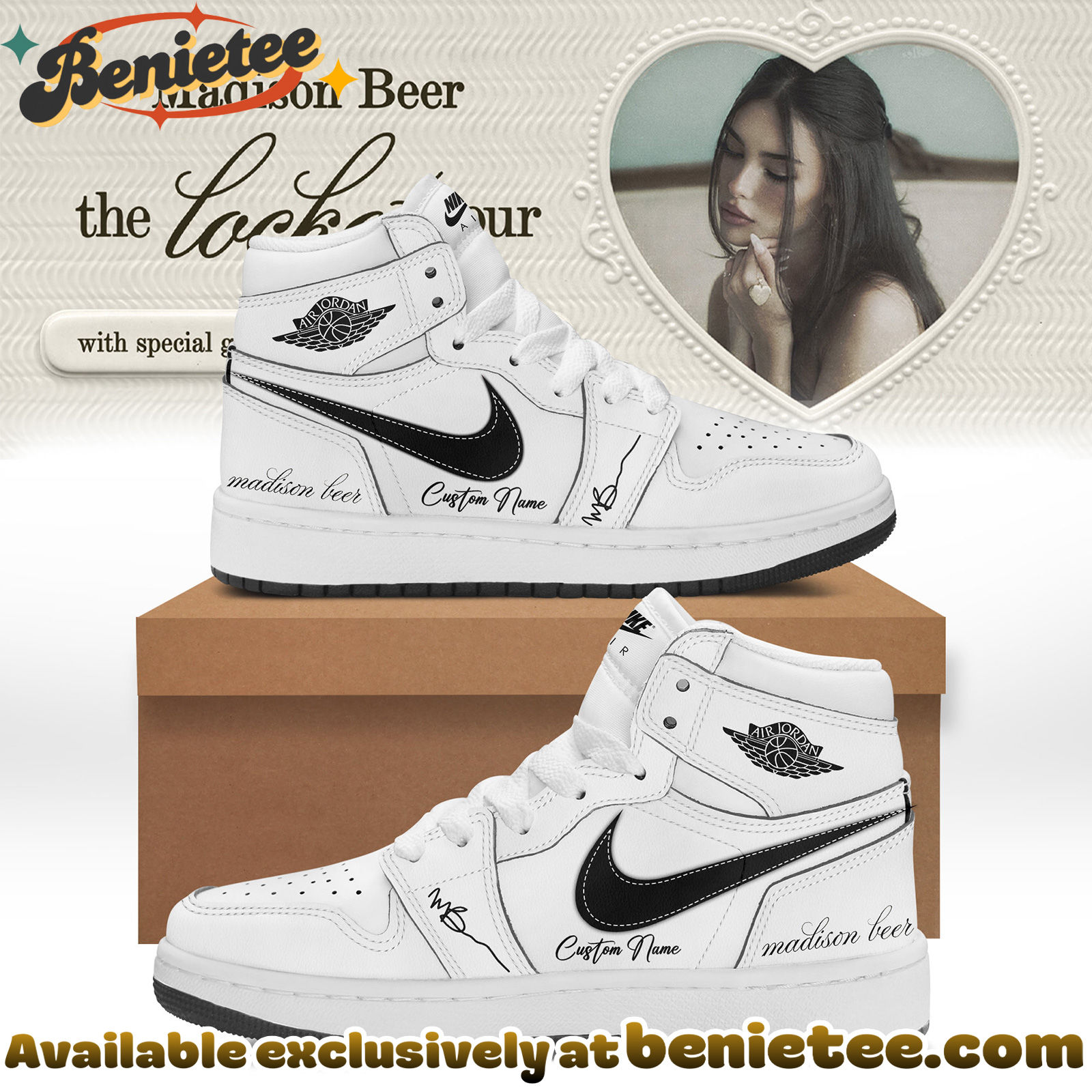 Celebrate Madison Beer’s iconic “The Locket Tour” with these exclusive Nike Air Jordan 1 sneakers. This Ver 11 design captures the essence of the tour, blending pop culture with legendary streetwear. Perfect for fans and sneakerheads alike, these shoes are a must-have for anyone looking to showcase their love for Madison Beer and classic sneaker aesthetics. The unique design pays homage to the tour’s unforgettable moments, making each step a statement.