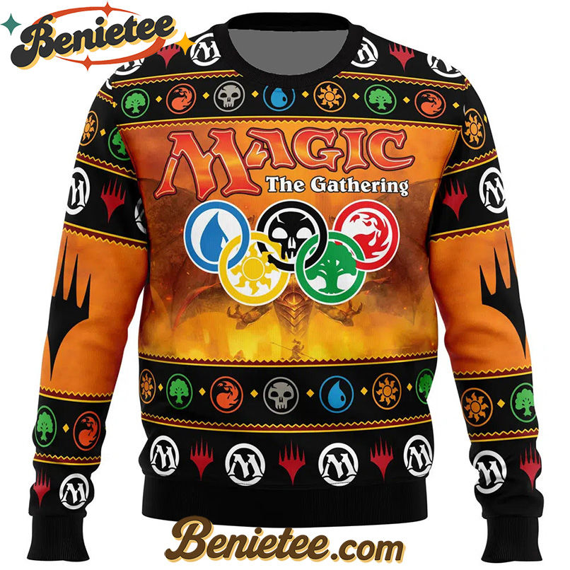 Unleash Your Inner Planeswalker This Holiday Season with the Magic Arena V3 Magic the Gathering Ugly Christmas Sweater!