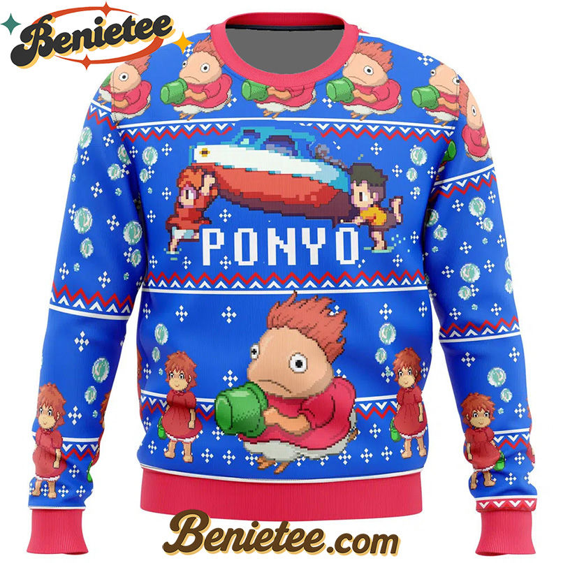 Embrace the Whimsical Charm of the Magical PONYO Ugly Christmas Sweater!