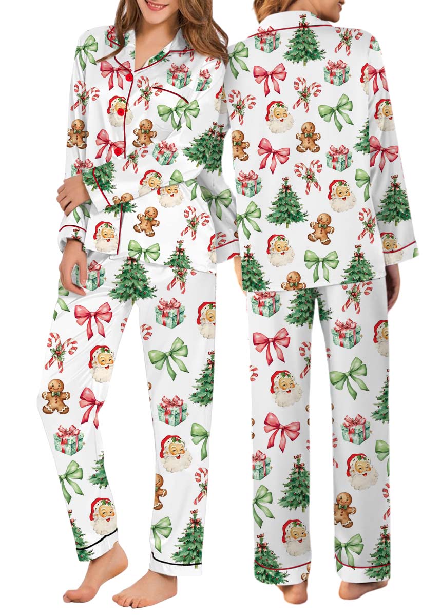 - This item: Matching Christmas Pajamas Set Long, Pink Bow Pattern Xmas Family PJM Set,Xmas Matching Shirt,Xmas Family Satin Pajamas, Bachelorette Party Pjs