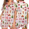 - This item: Matching Pajamas Bow Santa Print Button Short