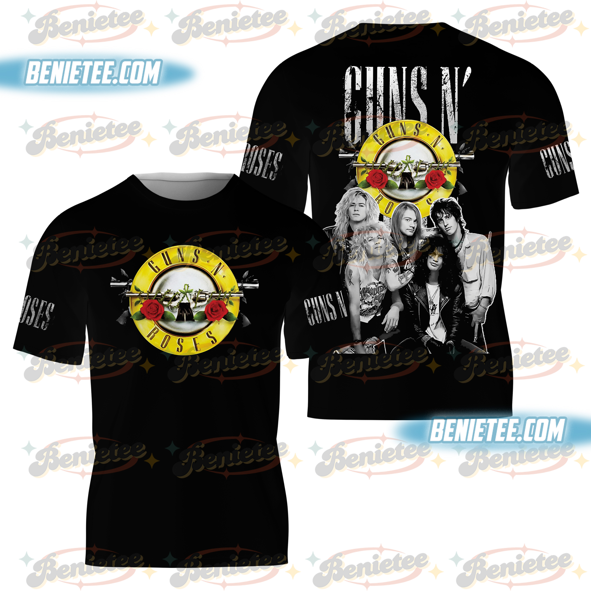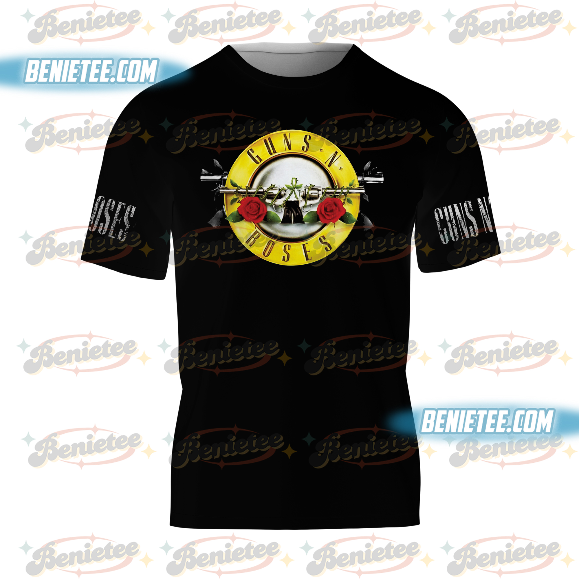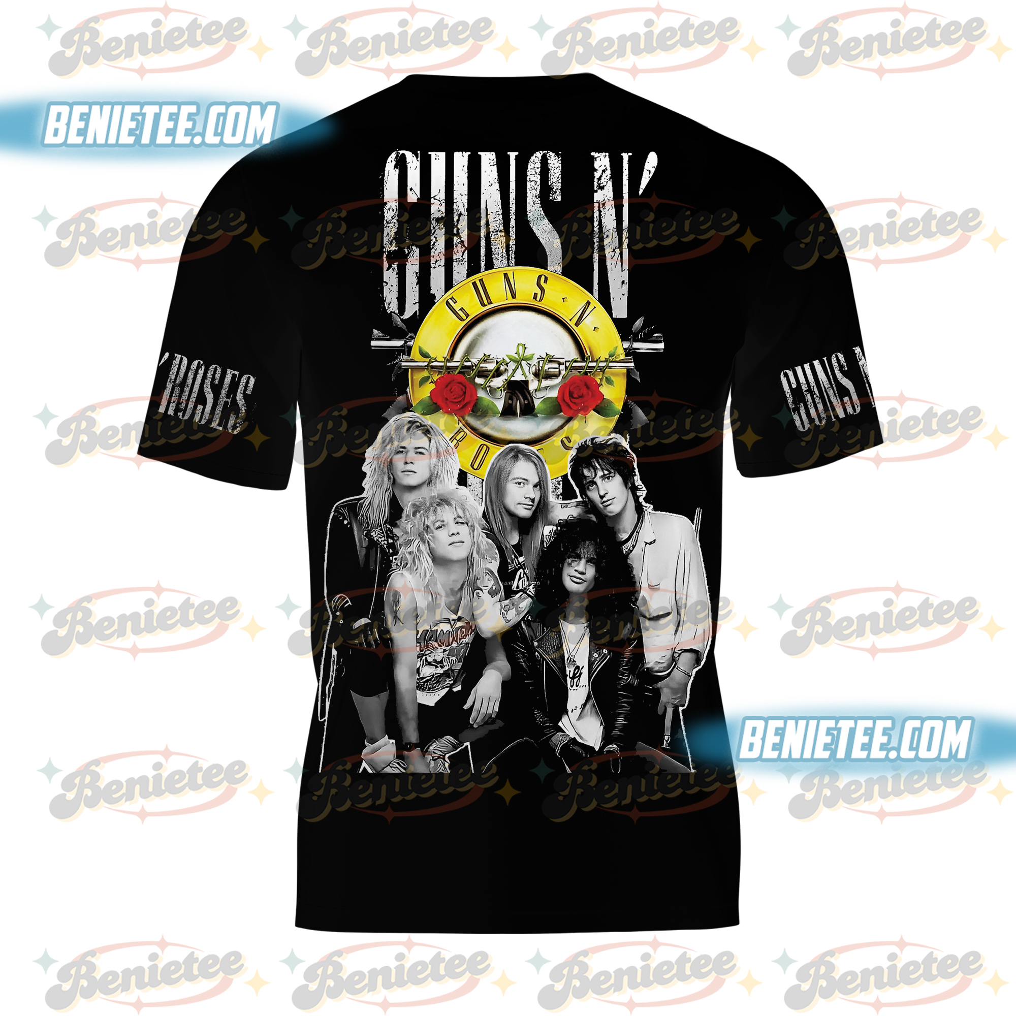 Guns N’ Roses 3D T-Shirt for men with all-over rock band graphic print, soft cotton blend fabric, unisex US fit, available in multiple sizes.
