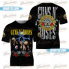 Guns N’ Roses 3D T-Shirt for men with all-over rock band graphic print, soft cotton blend fabric, unisex US fit, available in multiple sizes.