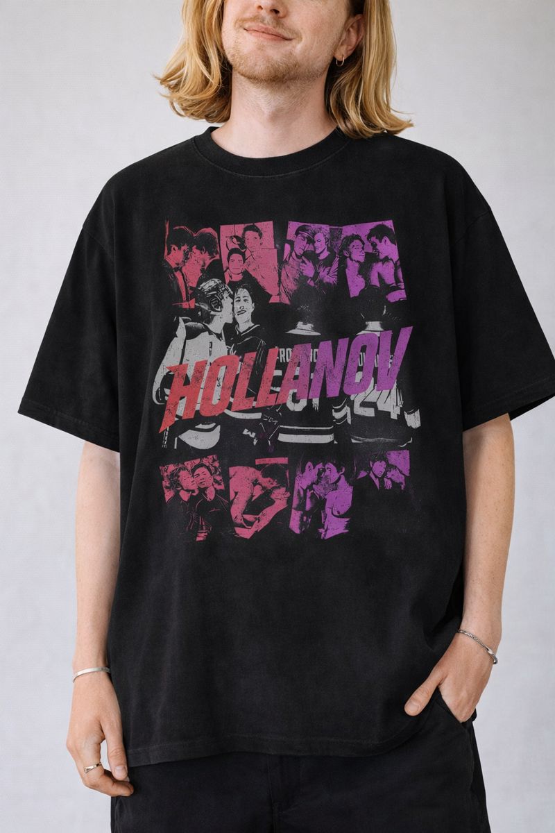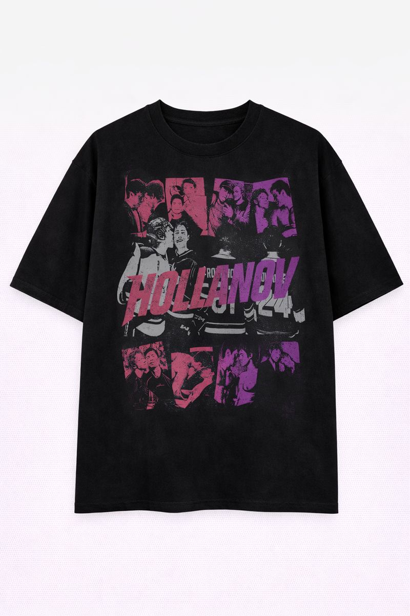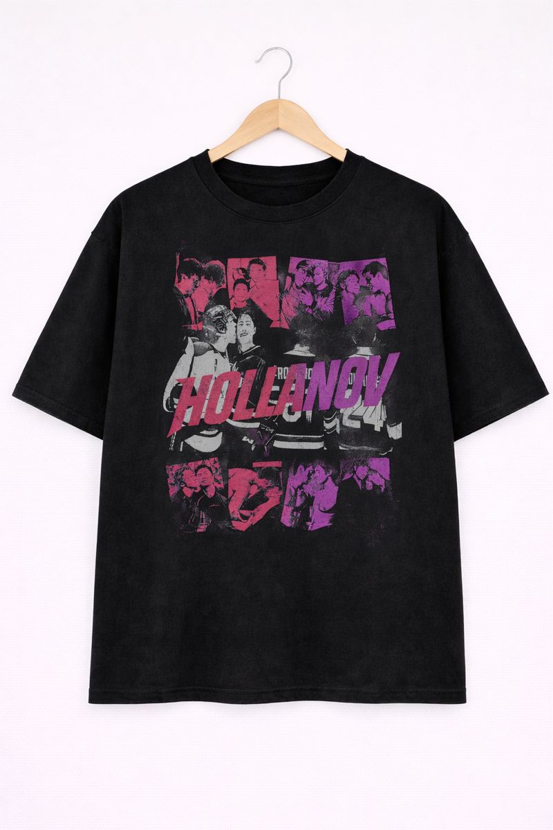 Relive the heat on and off the ice with our Hollanov Icebreaker Oversized T-Shirt. This premium heavyweight tee features a stunning, high-definition collage of Nathan Hawkins and Anastasia Allen, captured in a gritty, 90s-inspired bootleg style with vibrant purple and pink accents. Designed for fans who want to wear their love for Sports Romance with a modern, boxy streetwear silhouette, this shirt is the ultimate “comfort read” for your wardrobe.