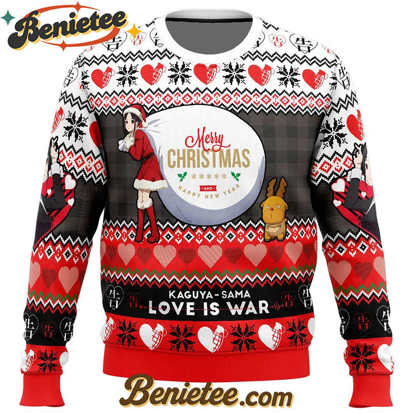 Embrace the Festive Spirit with the Merry Christmas and Happy New Year Kaguya-Sama: Love Is War Ugly Christmas Sweater!