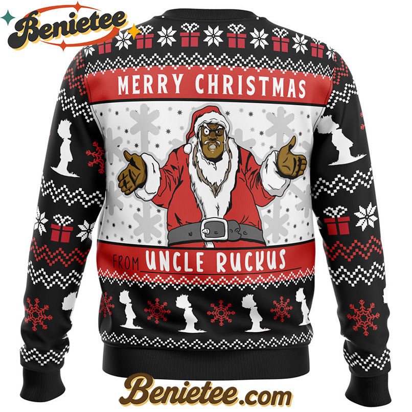 Get ready to spread some unique holiday cheer with the Merry Christmas From Uncle Ruckus Ugly Christmas Sweater. This festive and undeniably bold sweater is perfect for anyone who loves to stand out during the holiday season. Inspired by the unforgettable character, this sweater brings a dose of irreverent humor to your Christmas celebrations. Whether you’re attending an ugly Christmas sweater party, a family gathering, or just want to add some personality to your winter wardrobe, this piece is sure to be a conversation starter. Crafted for comfort and designed to make a statement, it’s the ideal way to showcase your appreciation for memorable characters and add a touch of playful mischief to your festive attire. Don’t miss out on owning this distinctive holiday apparel – buy yours today and make this Christmas unforgettable!