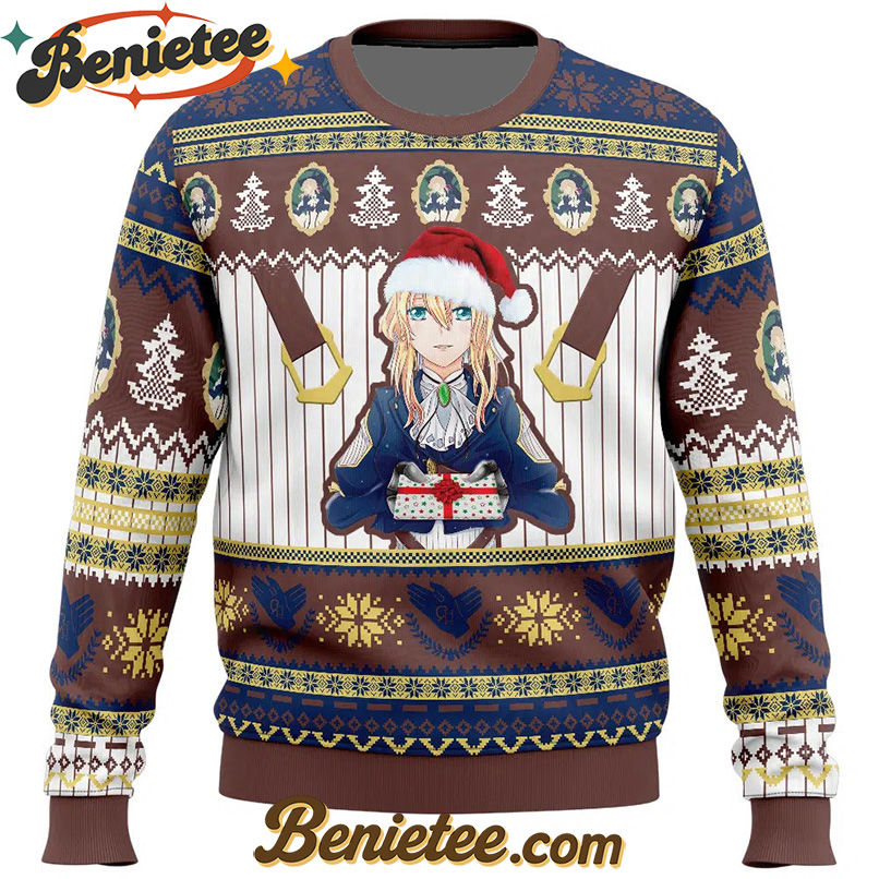 Embrace the Holiday Spirit with the Merry Christmas Violet Evergarden Ugly Christmas Sweater!