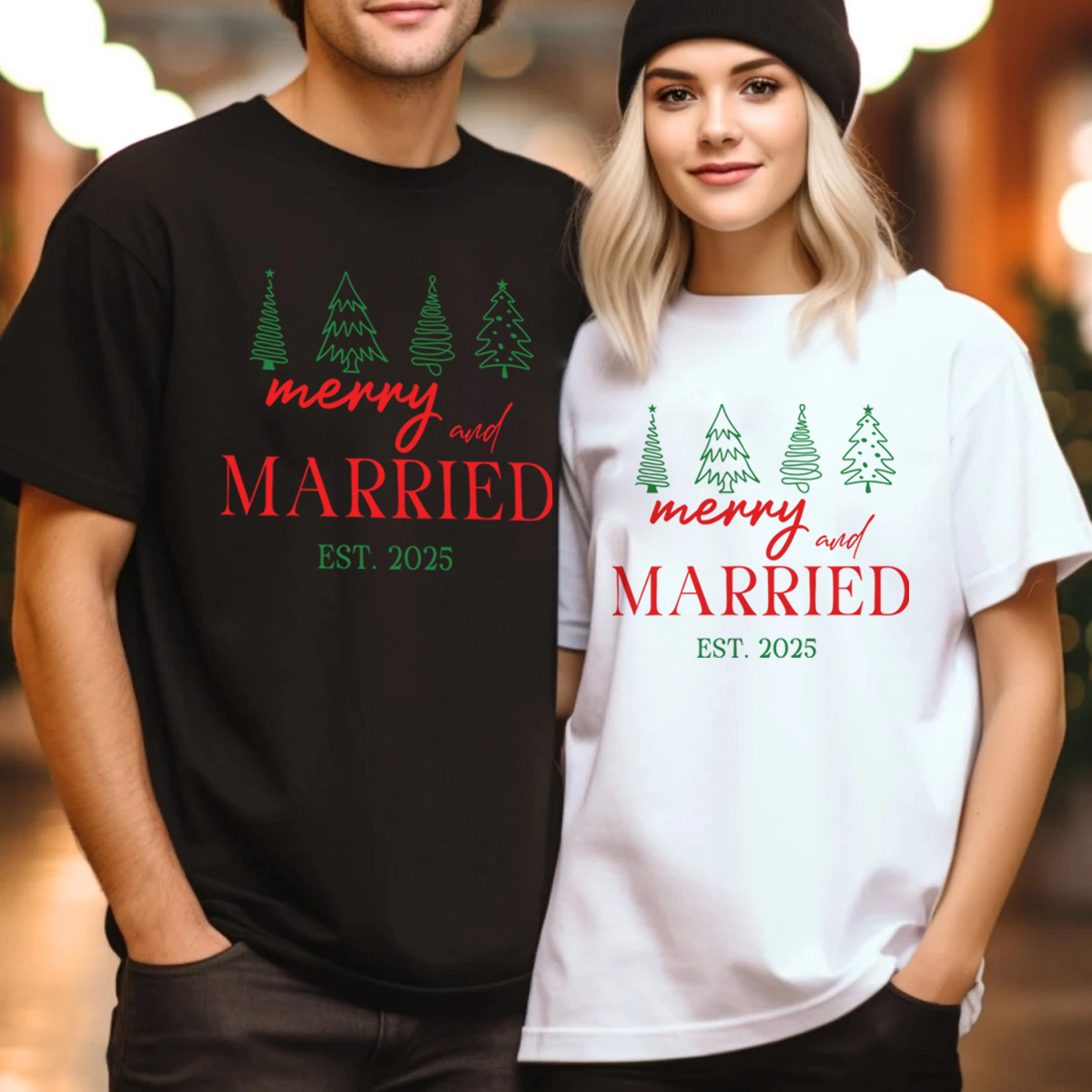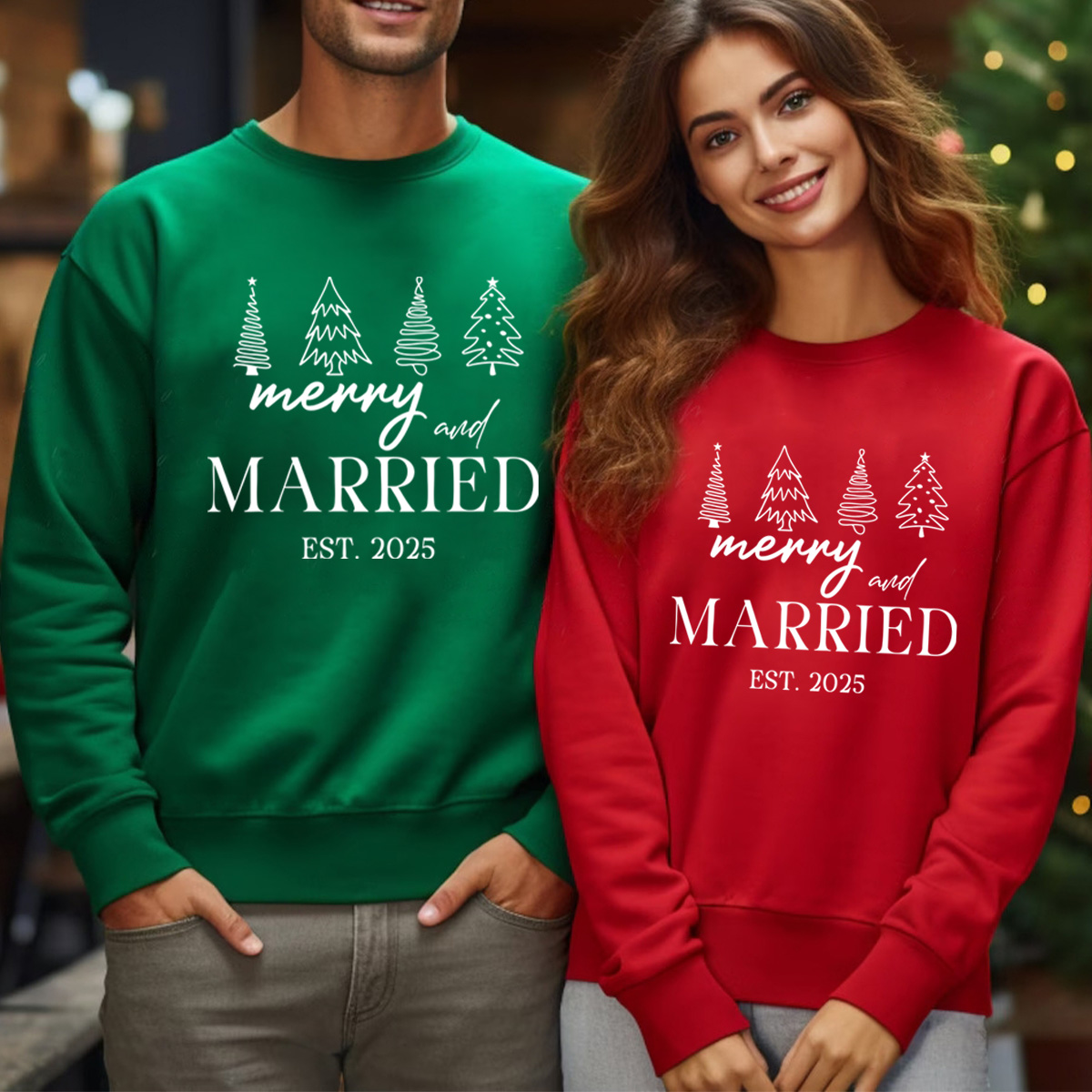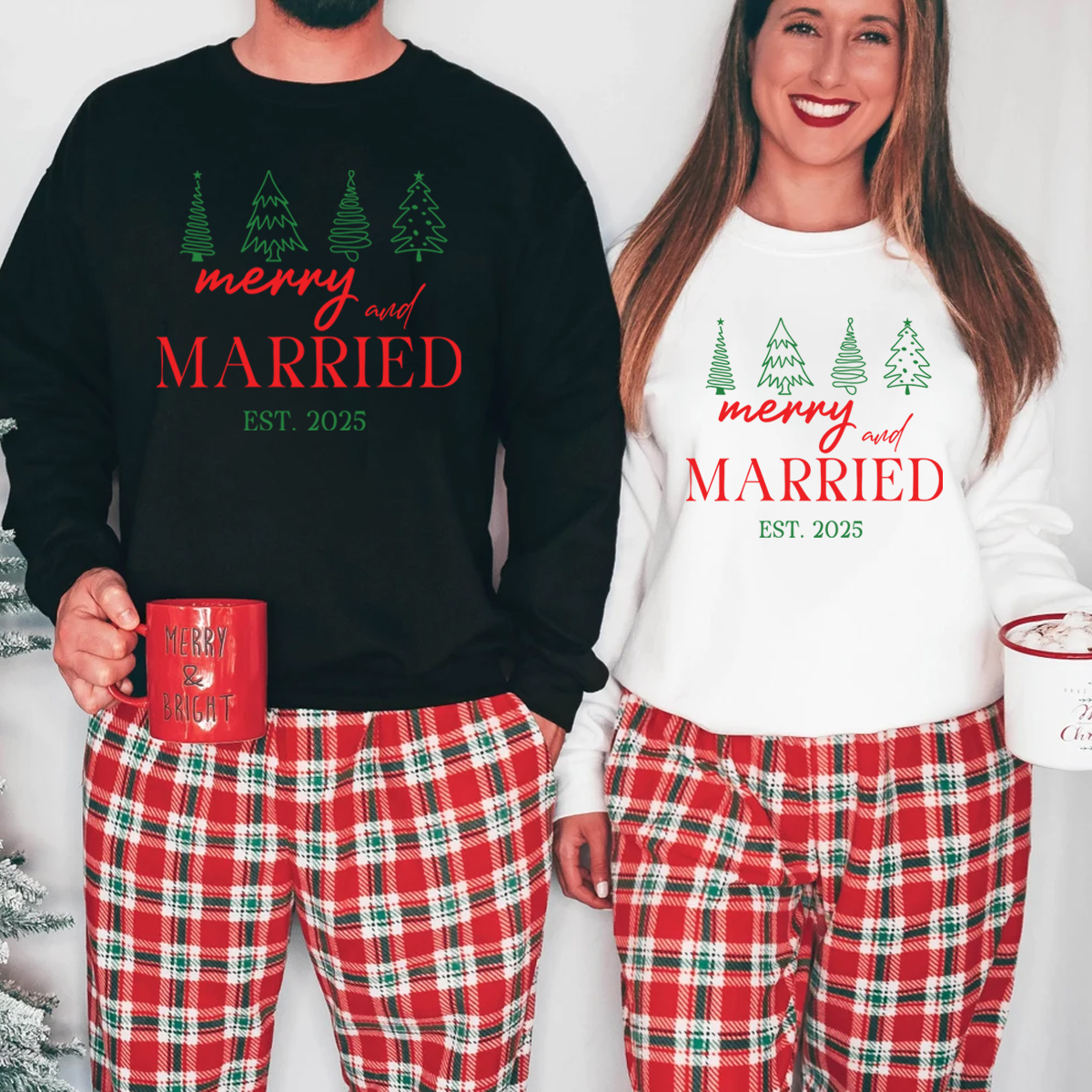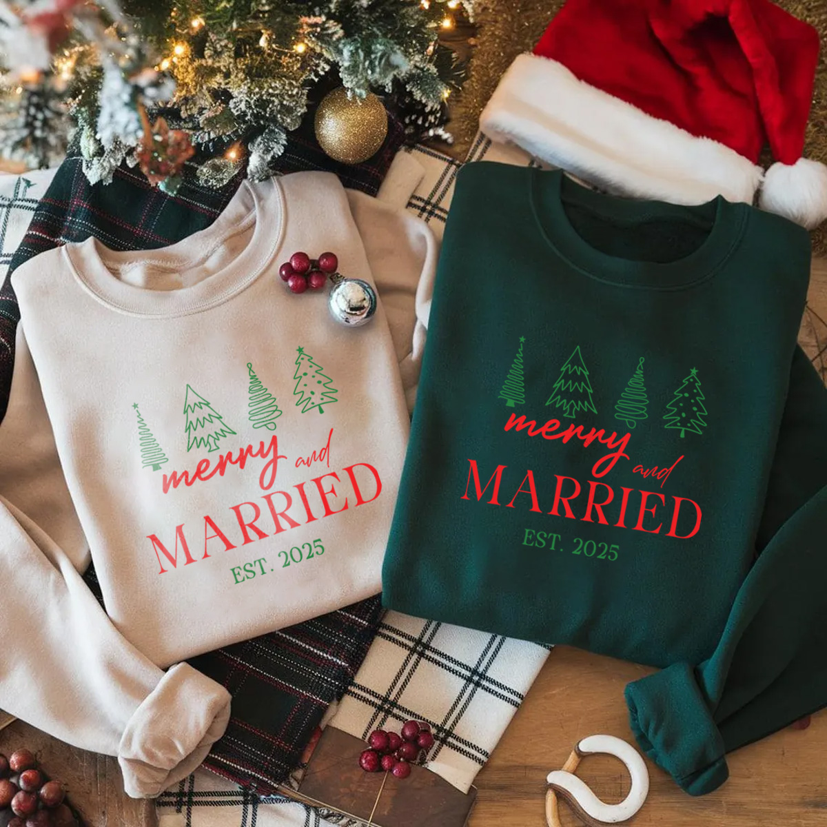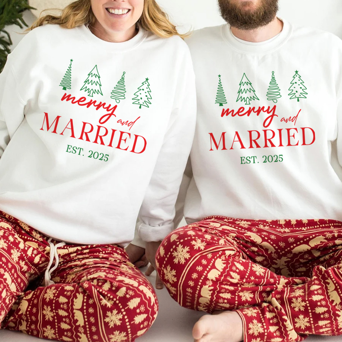 Merry & Married Sweatshirt, Christmas Newlywed Couple Sweater, Personalized Est Year Holiday Crewneck
