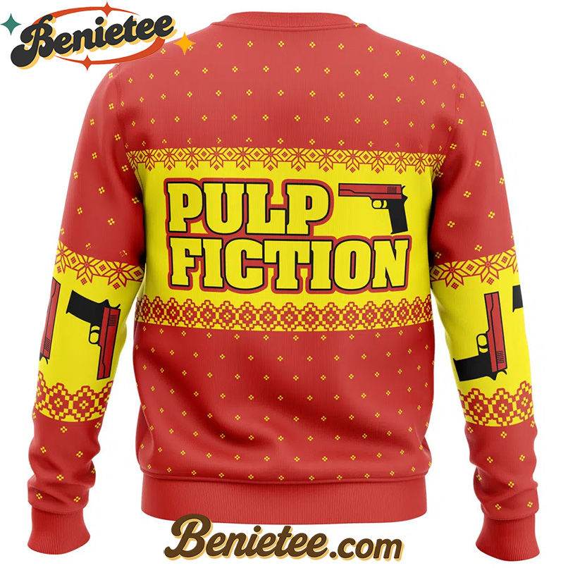Embrace the Holidays with a Merry Xmas Again Pulp Fiction Ugly Christmas Sweater!