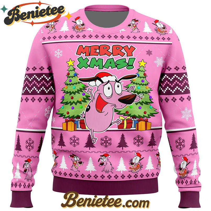 Embrace the Holiday Spirit with the Merry Xmas Courage the Cowardly Dog Ugly Christmas Sweater!
