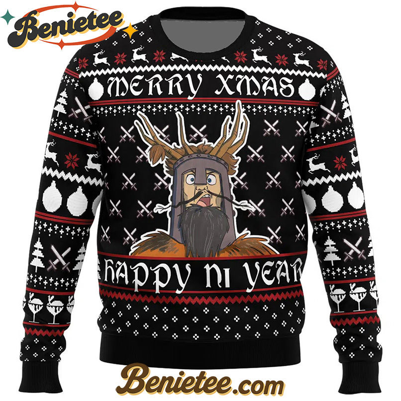 Celebrate the season with the Merry Xmas Happy Ni Year Monty Python Ugly Christmas Sweater — a playful, cozy ugly sweater made for joyful holiday moments.