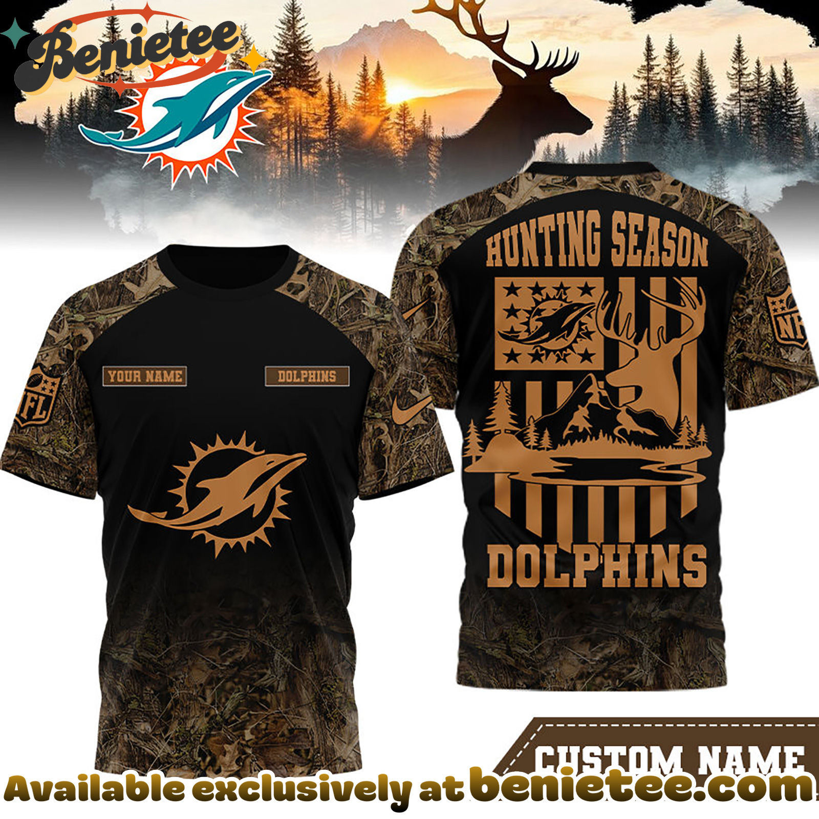 Score a Touchdown with the Miami Dolphins Premium NFL Hunting Season 3D Shirt Today!