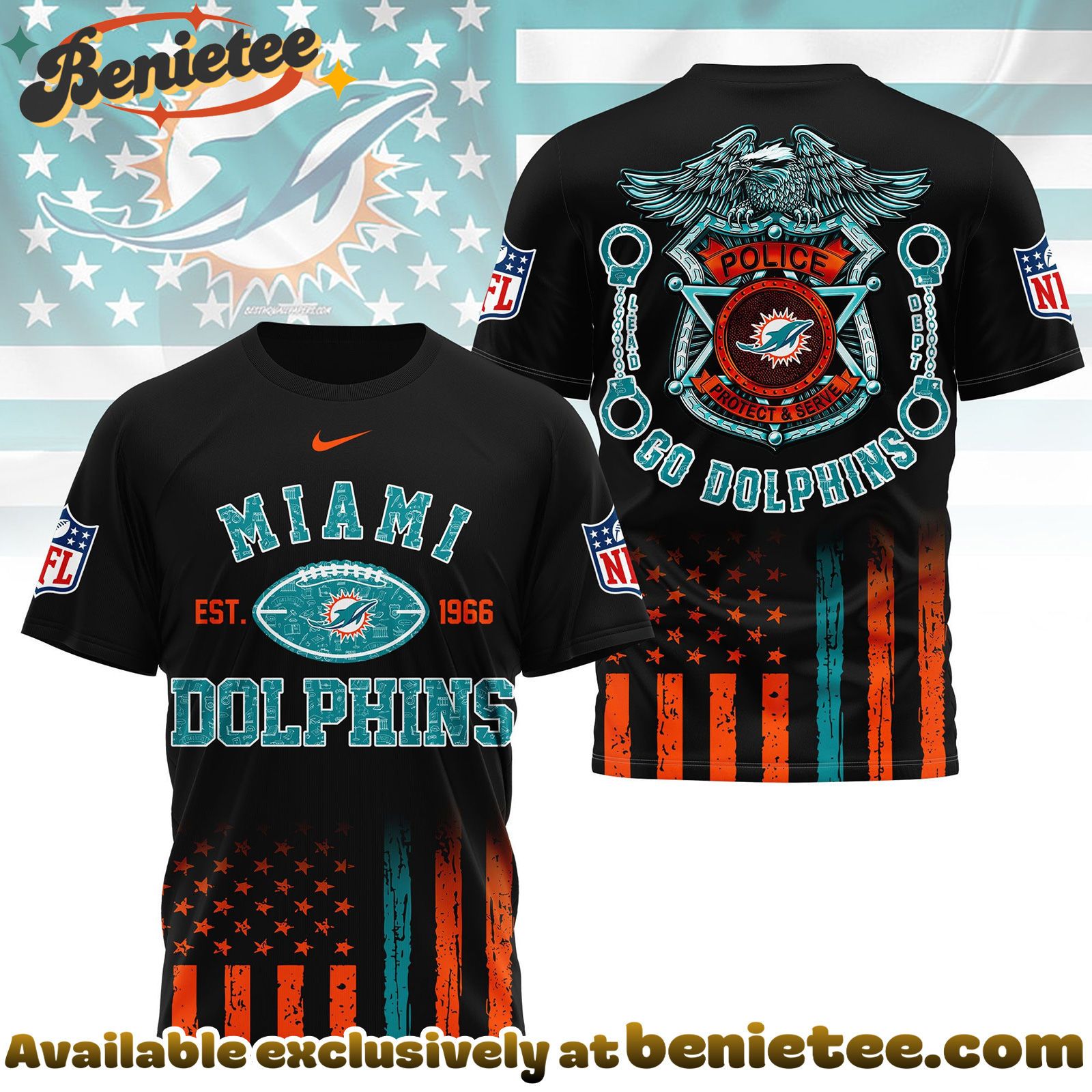 - ⚙️ Made to Order: Each Miami Dolphins Premium NFL Law Enforcement Tribute 3D Shirt is created individually after purchase to ensure a fresh, premium finish.
