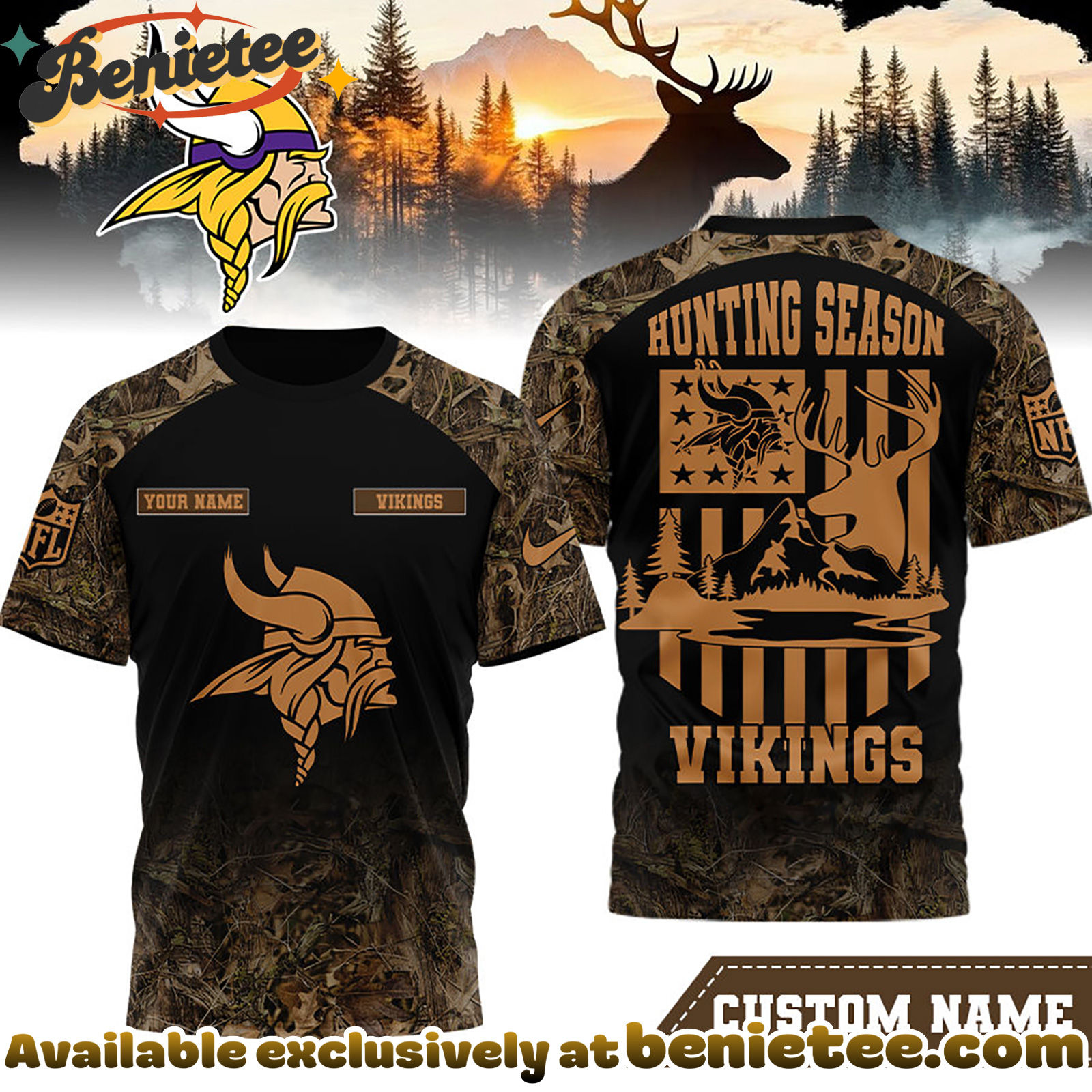 Why Choose Minnesota Vikings Premium NFL Hunting Season 3D Shirt – 3D Apparel?