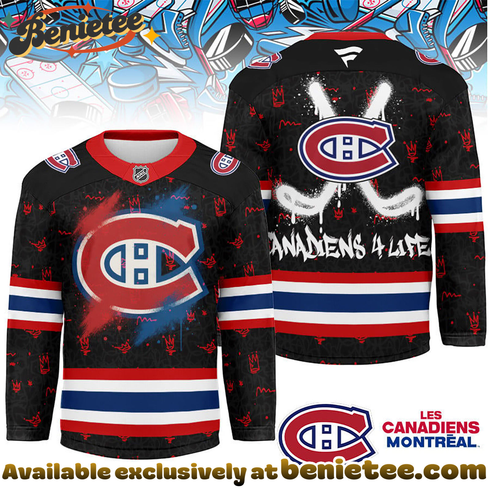 The Montreal Canadiens have a rich history filled with legendary players and unforgettable moments, and this “My Team 4 Life” Hockey Jersey is a tribute to that enduring legacy. The striking graffiti artwork adds a modern, edgy twist to classic team colors, making it a standout addition to any fan’s collection. Whether you’re a long-time supporter or a new fan embracing the tradition, this jersey is the perfect way to express your identity as a dedicated member of the Canadiens community. It’s more than just apparel; it’s a symbol of belonging and a testament to the passion that unites fans across generations. Secure this unique piece and let everyone know you’re a part of the Canadiens family, forever.