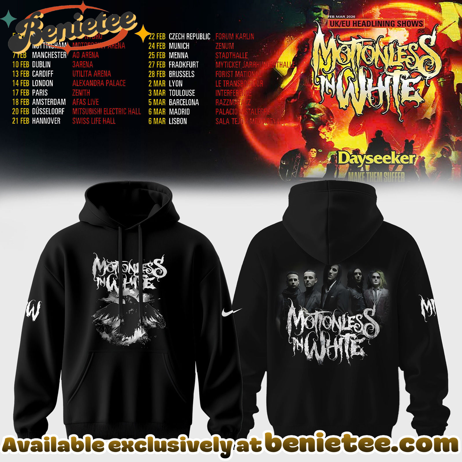 - This item: MOTIONLESS IN WHITE - UK EU TOUR DATES 2026 Collection Hoodie - Ver 3