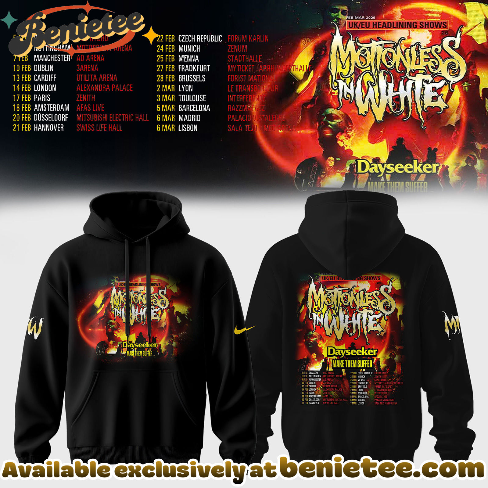 - This item: MOTIONLESS IN WHITE - UK EU TOUR DATES 2026 Collection Hoodie - Ver 4