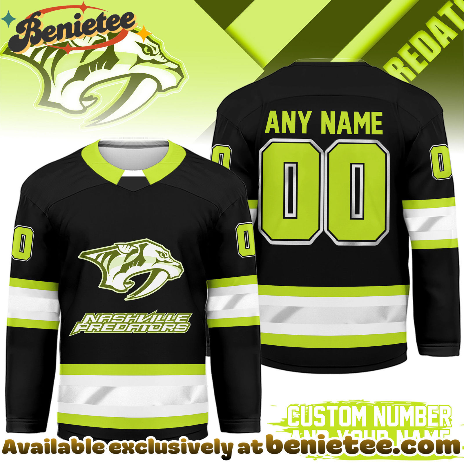 Elevate your fan experience with a custom-designed Nashville Predators jersey that truly represents your passion for the team and the excitement of the NHL. This Hi-Vis Hockey Spirit jersey isn’t just apparel; it’s a statement of loyalty and enthusiasm. Imagine yourself cheering from the stands or your couch, sporting a jersey that’s as unique as your fandom. It’s the perfect way to celebrate every thrilling goal, every spectacular save, and every hard-fought victory. Don’t miss the chance to own a piece of custom Predators memorabilia that will be cherished for seasons to come. Grab your personalized Nashville Predators jersey today and wear your team spirit with pride!