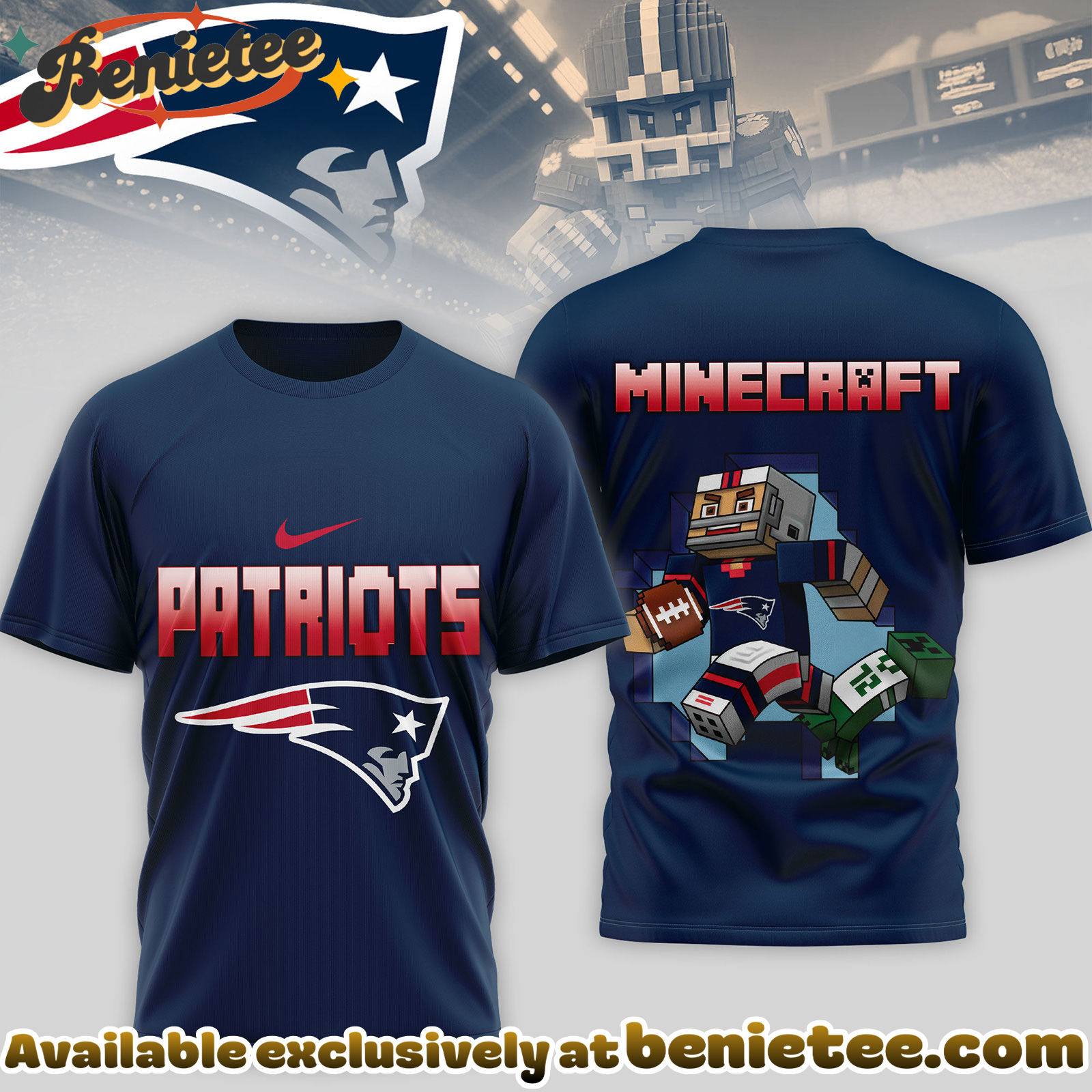 Show Your New England Patriots Pride with this Premium NFL Minecraft 3D Shirt!