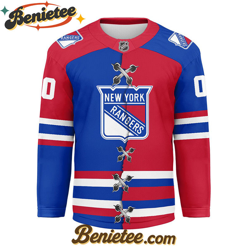 Score Big with a Custom New York Rangers Split Color Jersey – Order Now!