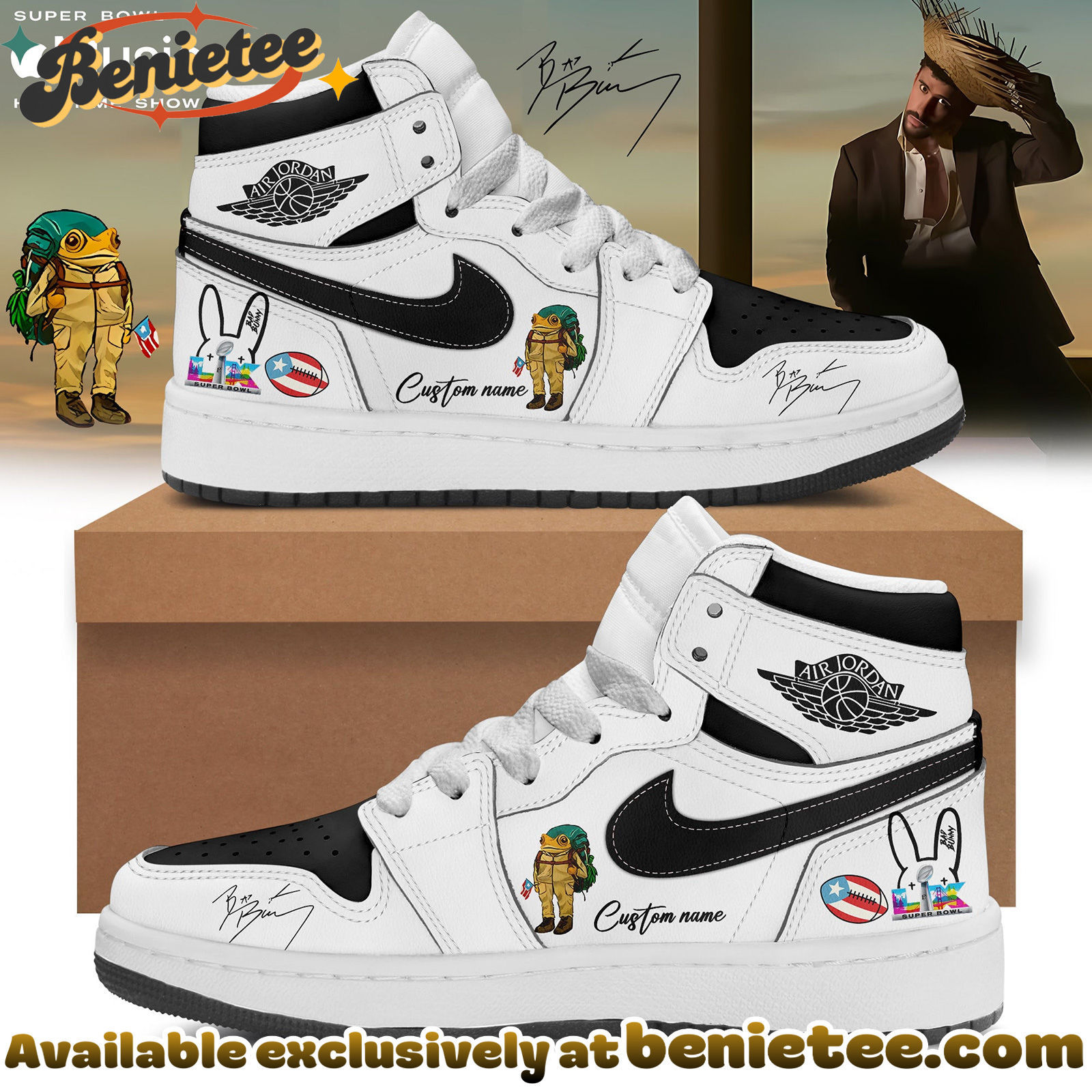 Experience the electrifying fusion of American football’s biggest event and a global music icon with the NFL x Bad Bunny Super Bowl x Air Jordan 1 collection. This unique collaboration brings together the raw energy of the Super Bowl with the unmistakable style and cultural impact of Bad Bunny, all embodied in the legendary Air Jordan 1 silhouette. Whether you’re a die-hard NFL fan, a devoted follower of El Conejo Malo, or an avid sneakerhead, this collection offers a distinctive way to showcase your passion. Own a piece of this monumental cultural moment and make a statement that resonates across sports, music, and fashion. Don’t miss out on owning this iconic blend of athletic prowess and musical artistry.