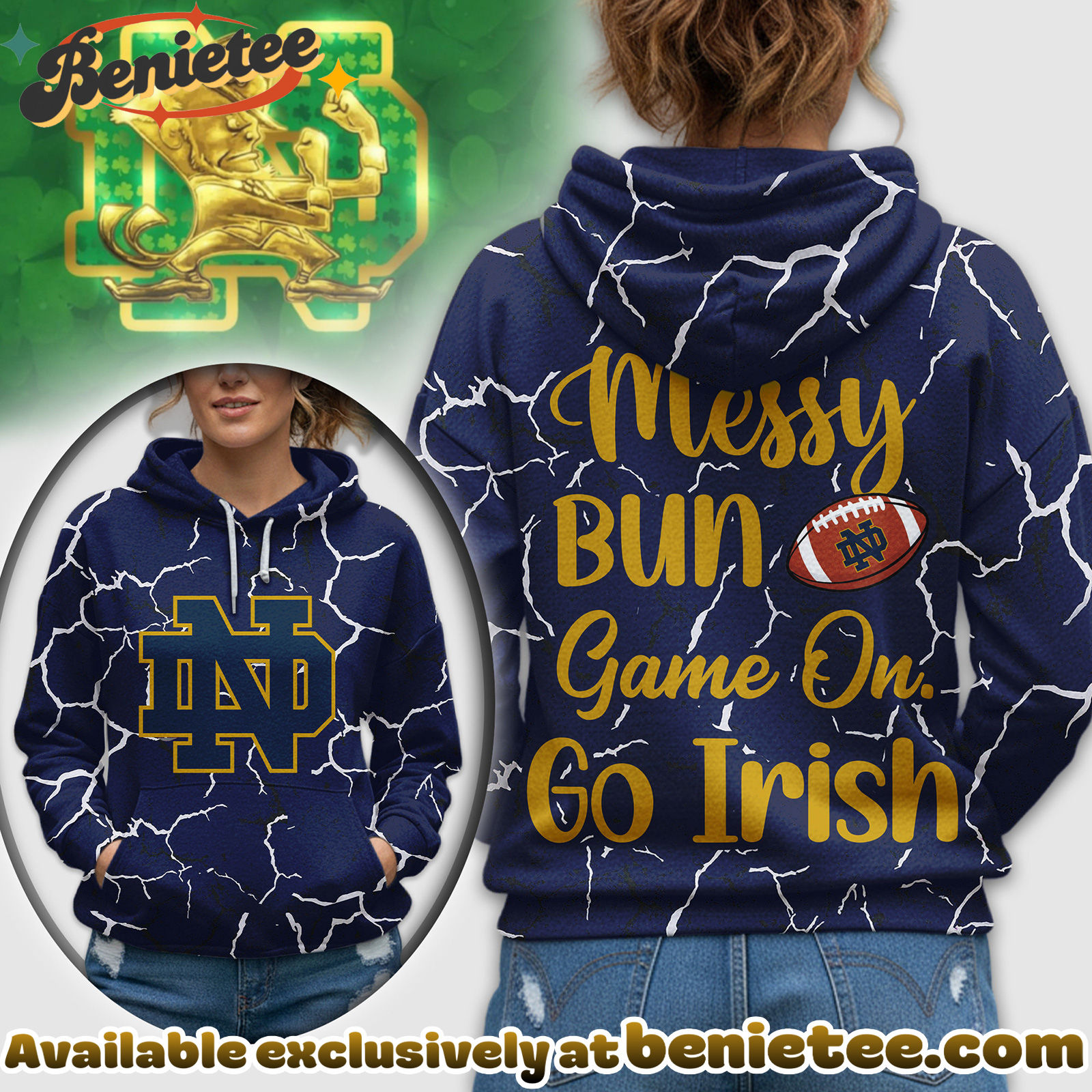 - ⚙️ Made to Order: Each Notre Dame Fighting Irish Premium NCAA Messy Bun Game On 3D Hoodie, Sweatshirt, Tshirt is created individually after purchase to ensure a fresh, premium finish.