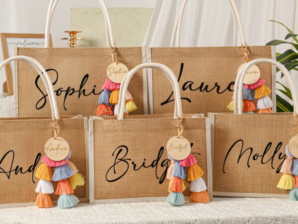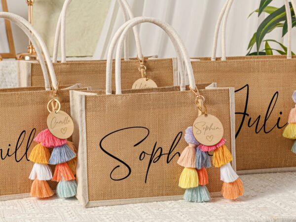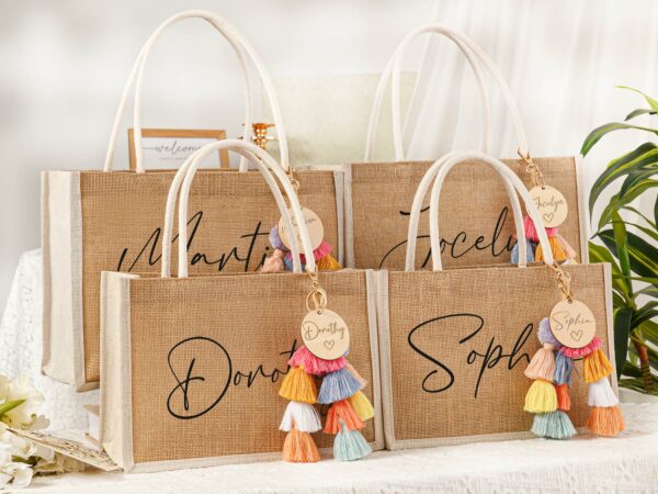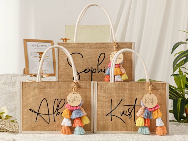- This item: Personalized Bridesmaid Gift Bag with charm,Custom Burlap gift Bag,Beach tote bag,Bachelorette Party Bag, Bridesmaid Proposal Gift,Beach BagOriginal price was: $38.56.$26.99Current price is: $26.99. Save 30%