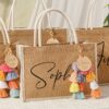 Personalized Bridesmaid Gift Bag with charm,Custom Burlap gift Bag,Beach tote bag,Bachelorette Party Bag, Bridesmaid Proposal Gift,Beach Bag