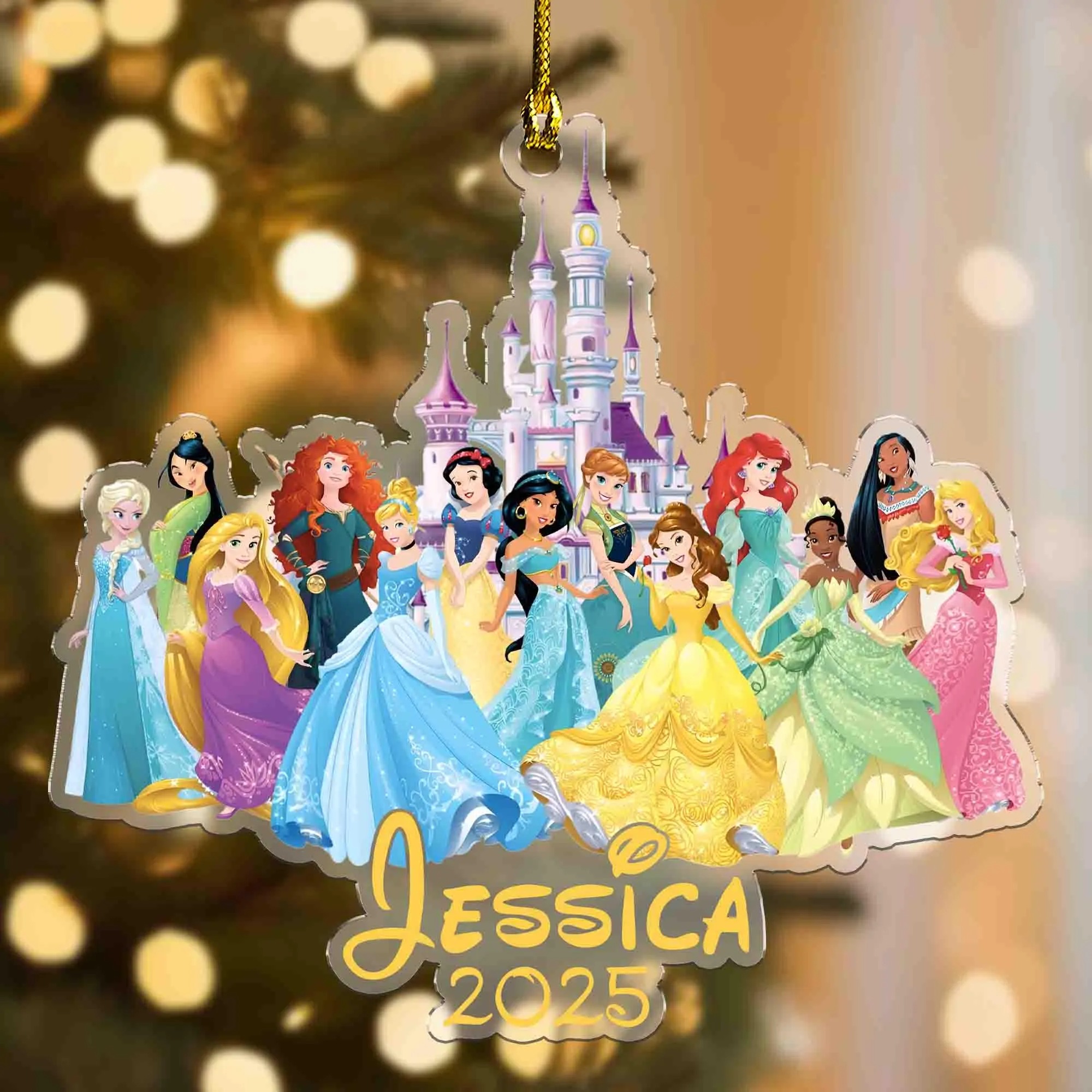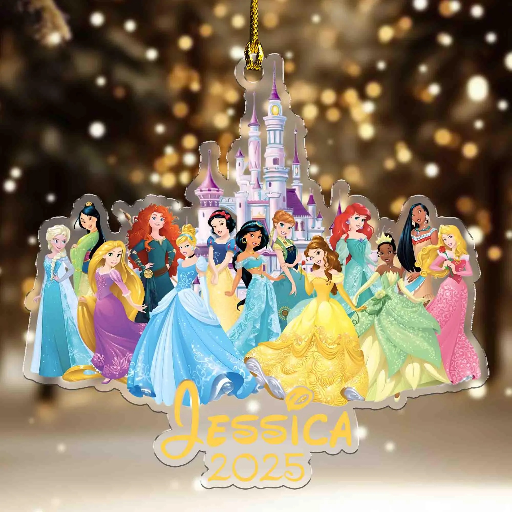 Personalized Disney Princess Christmas Ornament, Custom Name Princess Group Acrylic Ornament, Disney Ornament, Princess Birthday Girl Gift