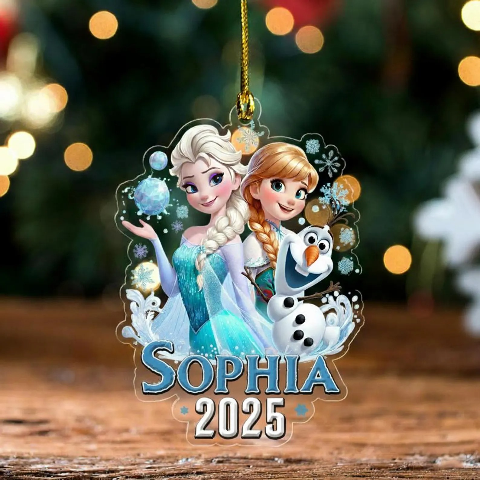 Personalized Elsa Anna Olaf Ornament, Disney Christmas Tree Decor